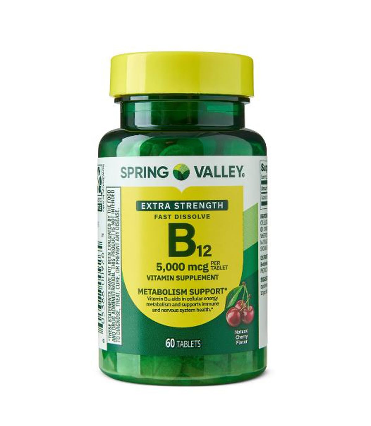 Spring Valley Vitamin B12 Fast Dissolve Tablets are specially formulated to support energy metabolism and a healthy nervous system. Each tablet delivers 5,000 micrograms of vitamin B12 and a delicious cherry flavor. This supplement is gluten-free and contains no lactose, salt, artificial colors or flavors. For optimal results, adults are recommended to take one tablet daily. Simply let the tablet dissolve under your tongue for 30 seconds and then swallow. Add Spring Valley Extra Strength Vitamin B12 Fast Dissolve Tablets to your wellness routine.