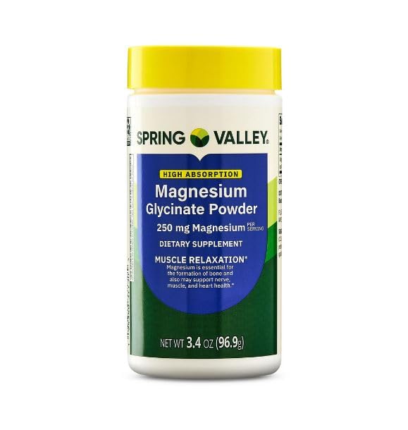 H4U - Spring Valley High Absorption Magnesium Glycinate Dietary Supplement Powder for Muscle Relaxation 3.4 oz