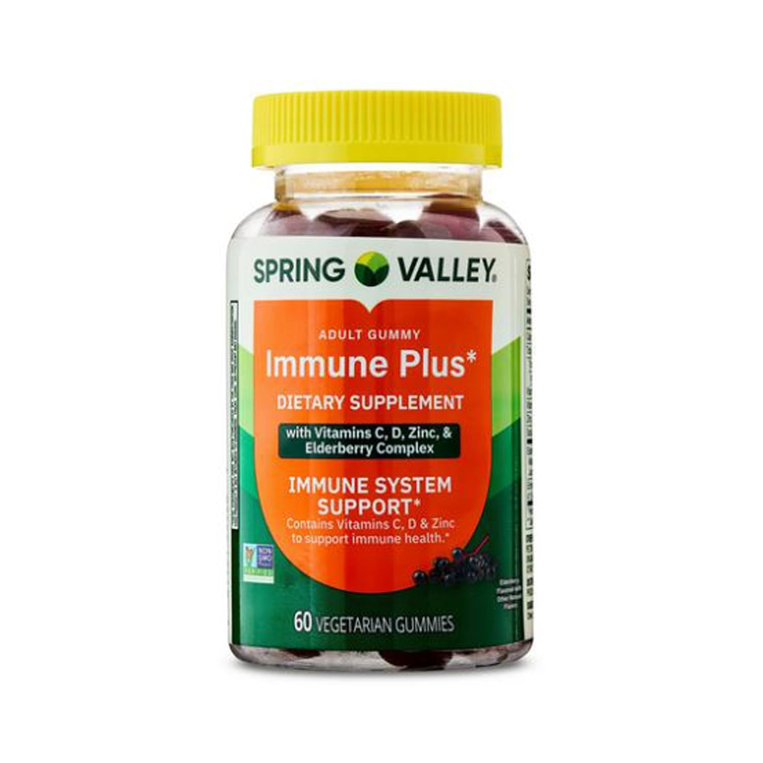 Formulated to support individuals of all genders leading a healthy, balanced lifestyle. Delicious, easy to chew, and ideal for daily supplementation. Spring Valley vegetarian-friendly gummy formulation. Supports a healthy immune response with Vitamin C, D, and elderberry . Non-GMO ingredients for holistic wellness. Spring Valley Immune Plus Dietary Supplement Vegetarian Gummies for Immune System Support, Elderberry, 60 Count.