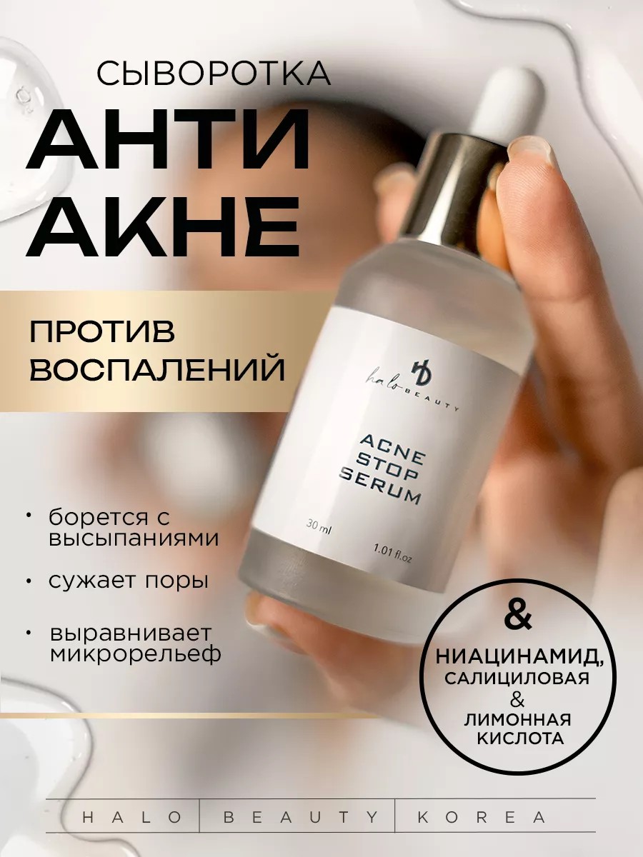 Acne Stop Serum - сыворотка для проблемной кожи была разработана специально для борьбы с высыпаниями. Она содержит экстракт листьев чайного дерева и ниацинамид, который буквально стирает все несовершенства с вашей кожи, активно борется с высыпаниями и постакне, в тоже время нормализует водный баланс, успокаивает и увлажняет кожу. Экстракт ромашки содержит азулен, который оказывает противовоспалительное и заживляющее действие. Салициловая и лимонная кислота выравнивает тон, рельеф кожи и сужает поры, помогая ускорить процесс обновления кожи.