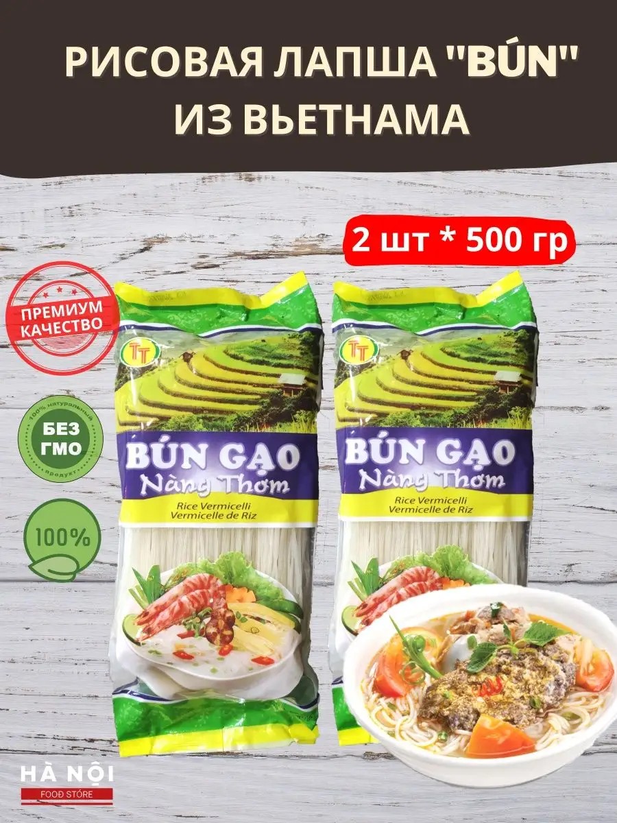 Рисовая лапша - основа большинства блюд кухни стран Юго-Восточной Азии. Вам знакомо такое блюдо, как фо бо? Это коронное блюдо вьетнамской кухни: говяжий бульон с мясом (курица или говядина), зеленью и рисовой лапшой. Эта рисовая лапша идеальна для приготовления настоящего вьетнамского фо бо, как его готовят в лучших кафе Ханоя. Это также отличный альтернативный вариант гарнира вместо привычной яичной лапши, макарон или круп. С рисовой лапшой можно приготовить как суп, так и второе блюдо - тайская лапша пад тай, лапша ВОК тоже готовятся на основе рисовой лапши с добавлением соусов, мяса, морепродуктов и овощей. В чем же преимущество рисовой лапши перед другими гарнирами? Состав: рисовая мука и вода, прекрасно подходит для тех, кто не переносит глютен и очень трепетно относится к подбору продуктов для своего рациона Легкость в приготовлении - достаточно лишь отварить ее в кипящей воде в течении 2-3 минут Универсальность - подходит как для супов, так и для вторых блюд Для веганов и вегетарианцев - отличный способ разнообразить свой рацион Натуральная вьетнамская рисовая лапша для настоящих ценителей кухни стран Азии! Рисовые макароны, Bun kho, лапша бун, фо, Pho, Фо Бо, Pho Bo