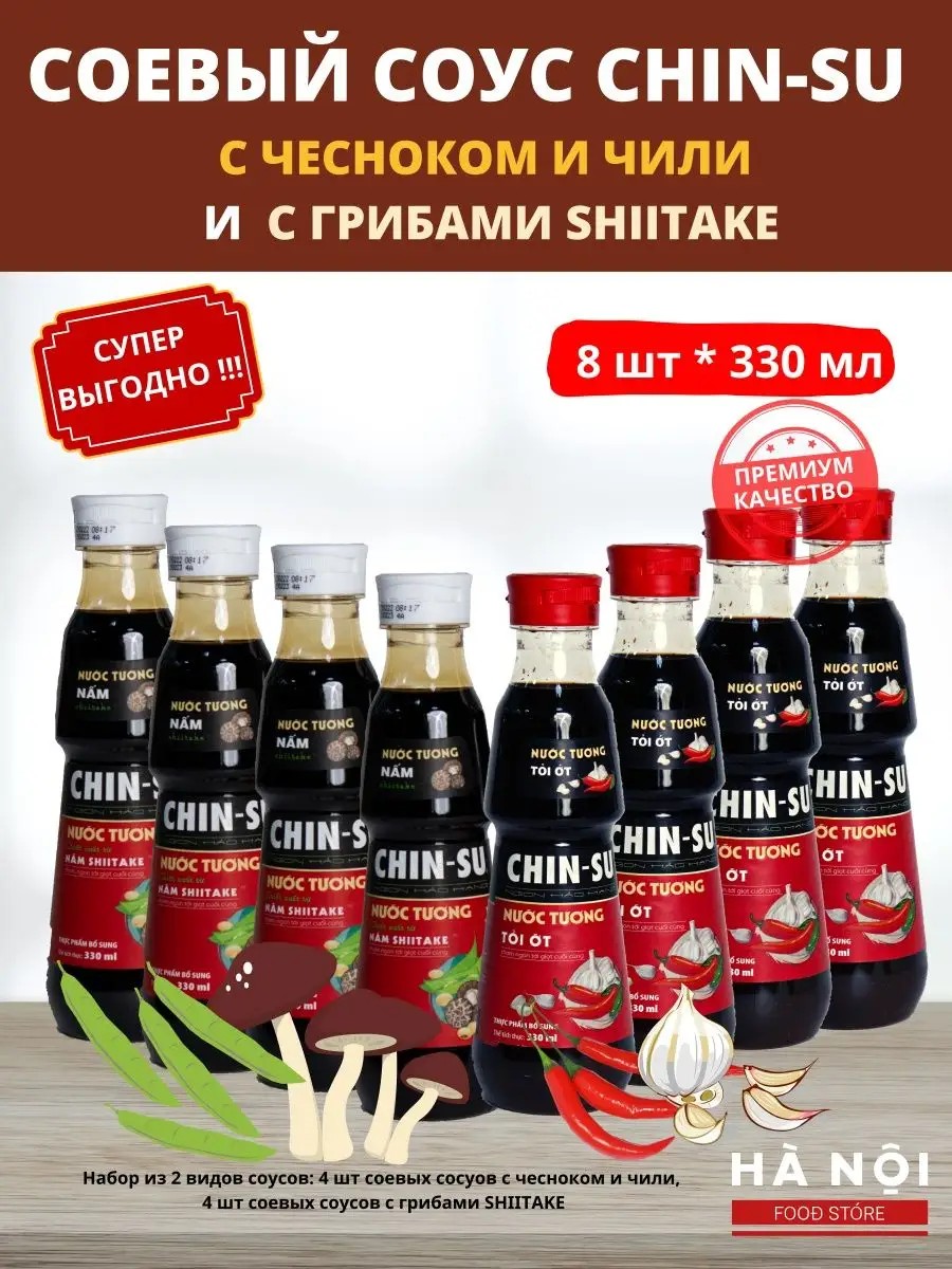 Ha Noi Food Store Соевый соус Chin-su с чесноком и чили, грибами шиитаке 8 шт.