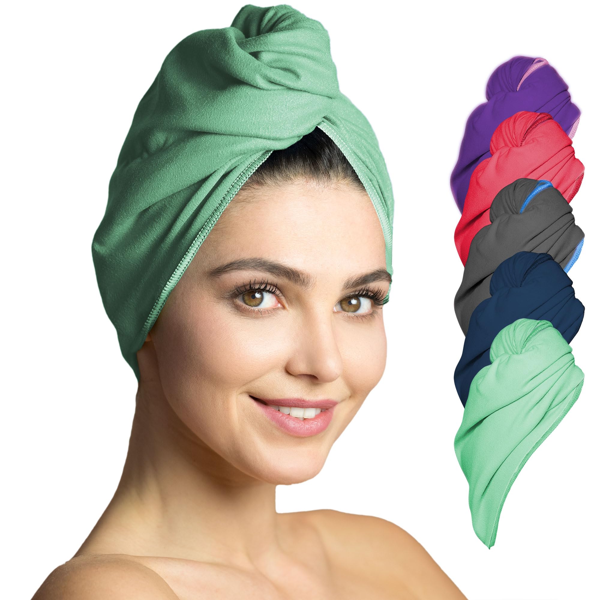 Haarturban Set Mikrofaser – 2 Stück, saugstark und schnelltrocknend - Spezial Turban Handtuch als auch Haarhandtuch (mint) 2 Stück 08 - Mint