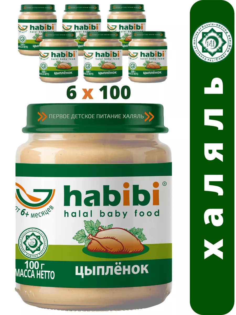 Вкусный и полезный комплексный обед для детского питания малышей с 6 месяцев. Детское мясное пюре с цыпленком Habibi - это полезный и сытный мясной обед для младенцев, непревзойдённый по качеству продукт в линейке детского мясного пюре в баночках Халяль. Мясное пюре для детей будет вкусным и полезным первым прикормом для малышей. Мясное пюре для детей имеет в составе большое количество медленных углеводов, которые ускоряют расщепление жиров и помогают лучше усвоить полезные вещества, содержащиеся в других продуктах. Куриное филе в пюре из мяса имеет нежную текстуру из мышечных волокон белого мяса, которое легко усваивается, имеет низкий процент холестерина, пользу для тканей растущего организма, высокое содержание фосфора и кальция способствует развитию костной системы и крепких, здоровых зубов, а также детское мясное пюре цыпленок богато железом, который переносит кислород по органам и тканям, а также витамин А и микроэлементы. Детское питание Хабиби имеет удобный формат небольших стеклянных баночек, которые просто брать с собой. Рецепт детского мясного пюре Цыпленок прост: при приготовлении не используется крахмал, консерванты, ГМО, ароматизаторы и загустители. Купить детское пюре мясное с овощами – значит с заботой, любовью и вниманием создать для вашего малыша полноценный прием пищи для энергичного дня.