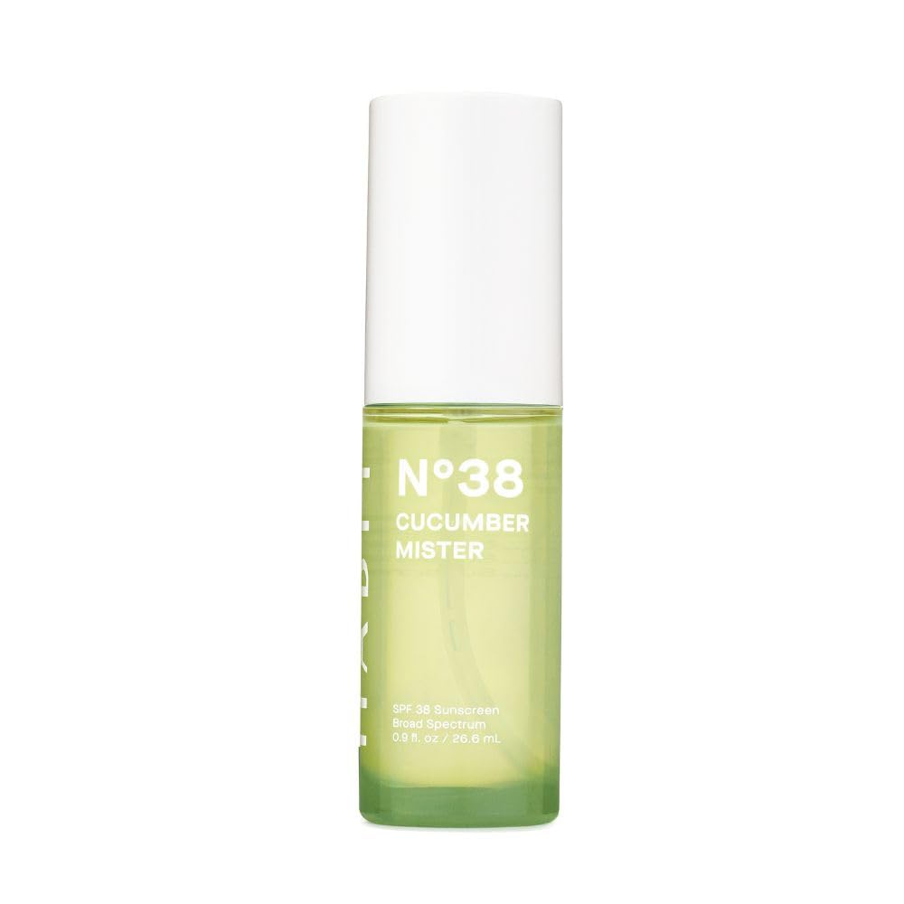 An ultra-fine SPF 38 mist designed for touchless application over makeup, skincare, or directly onto skin with a fresh cucumber scent.