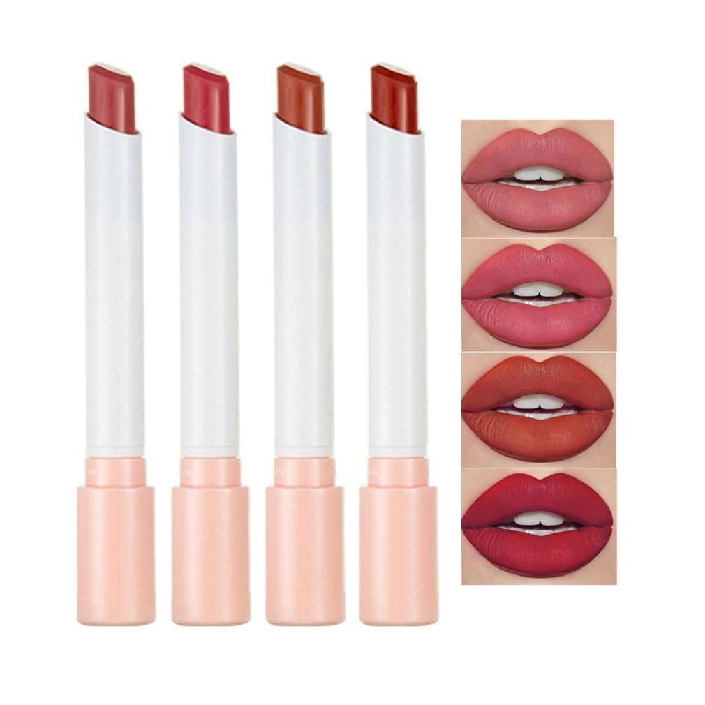 Rouge à Lèvres Mat 4 Teintes - Set Hydratant Et Velouté, Imperméable Longue Durée avec Cœur Nourrissant (A)