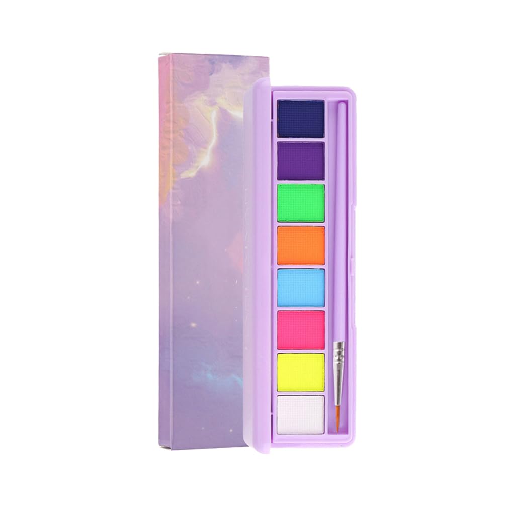 SUITABLE FOR ALL OCCASIONS: This palette will make you shine on any occasion. You can also turn heads with unique makeup looks during Halloween, Christmas, New Year's, birthdays, and other celebrations. EASY TO USE: The fluorescent makeup palette applies smoothly, is pigmented, and easy to blend. Simply dampen a brush or sponge and dip into the color for a stunning UV finish. PORTABLE: Take your all-in-one makeup palette with you wherever you go thanks to our compact and lightweight design. VERSATILE USE: Unleash your creativity and transform your look with our Highlighter Makeup Palette. Whether it's face paint or body art, it gives you the freedom to express yourself and create personalized looks. FLUORESCENT EYESHADOW: These colors feature unique fluorescent hues under ultraviolet light, adding an extra touch of allure.