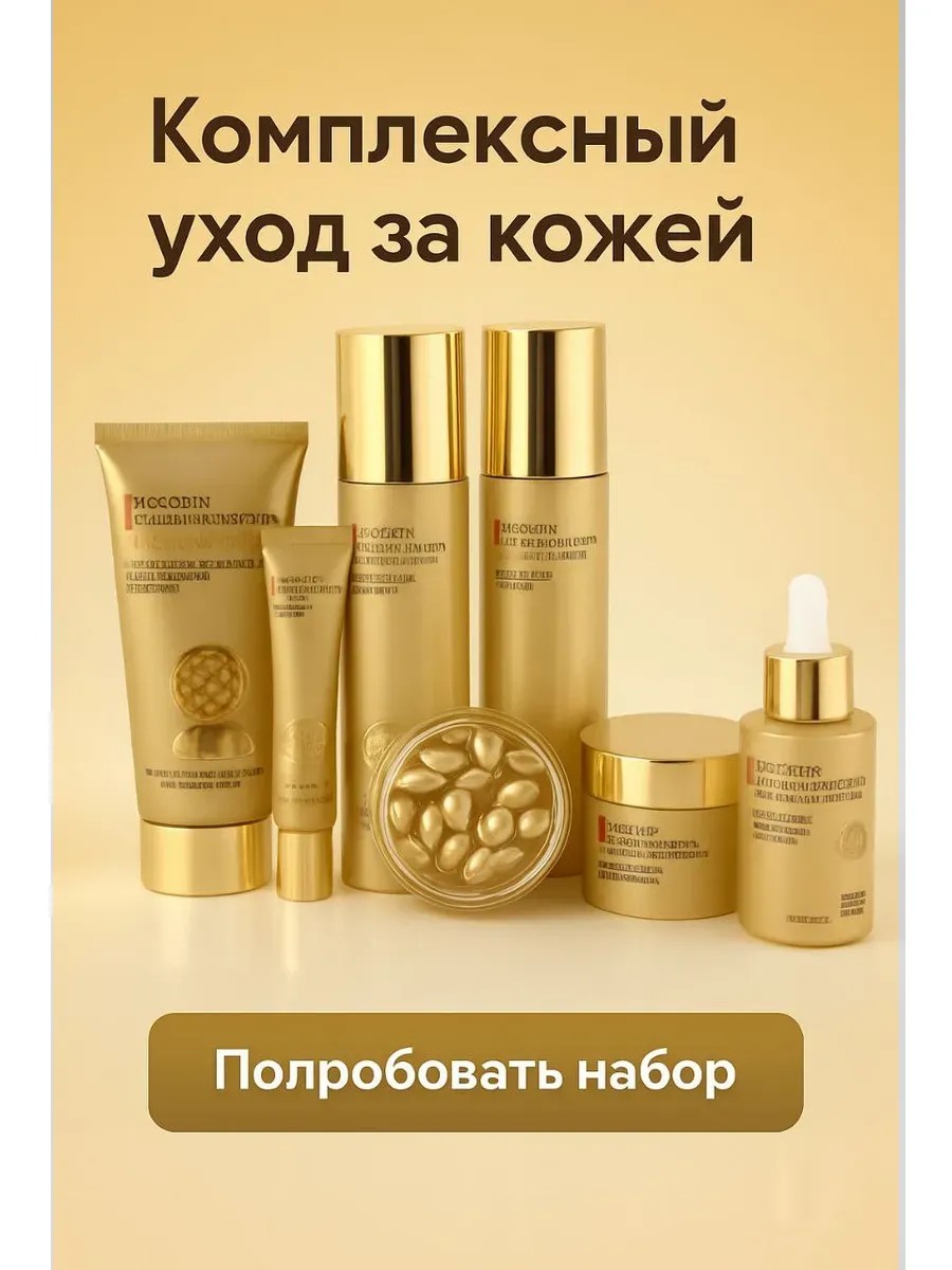 Полноценный набор косметики с экстрактом плаценты: тоник, лосьон, крем, сыворотка, очищающее средство, капсулы и крем для век. Подходит для сухой, возрастной и тусклой кожи. Мягко очищает, глубоко питает, восстанавливает эластичность и сияние.