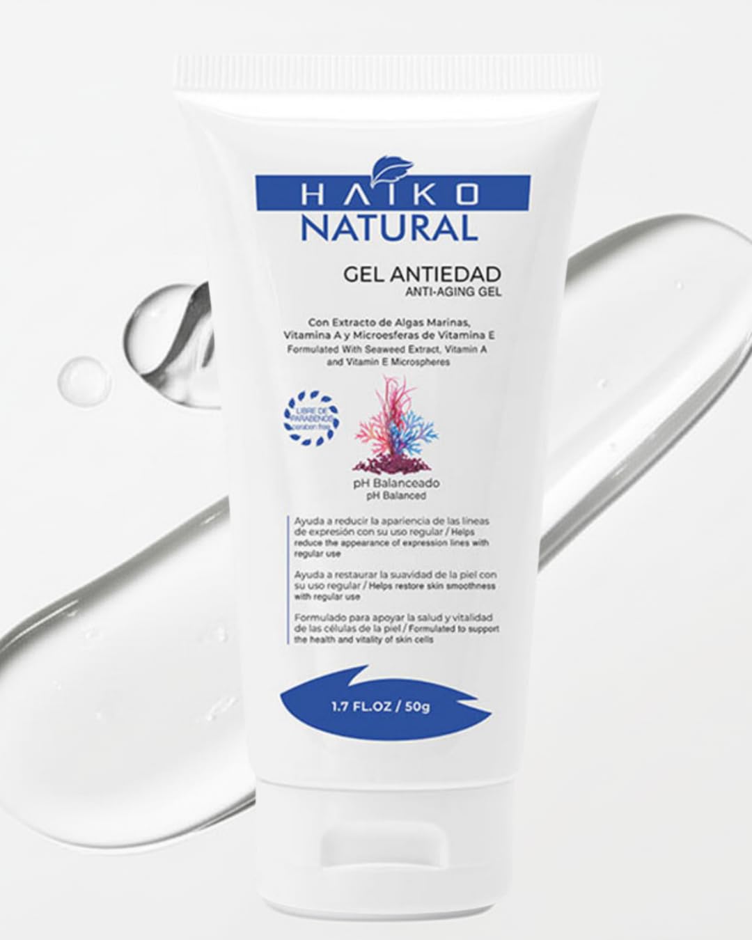 HAIKO NATURAL Anti-Aging Gel with Marine Algae Extract and Vitamins A & E. Smooths Fine Lines and Boosts Skin Elasticity. Deep Hydration and Cell Renewal. Paraben-Free Cruelty-Free - 1.7 FL.OZ / 50g