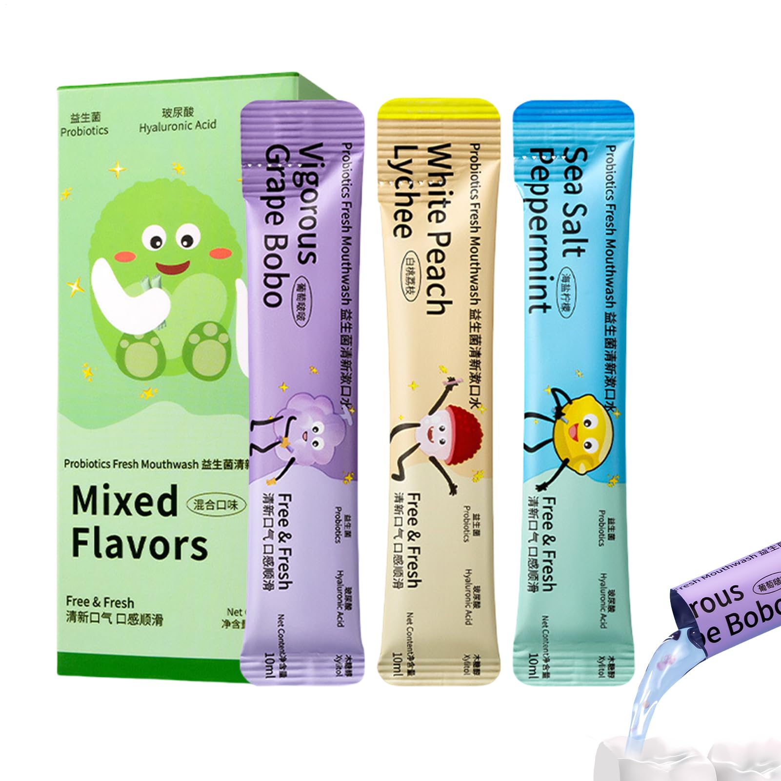 Bains de Bouche en Sachets 15 Sachets De Soin Buccal Fraîcheur D'À Longue Durée Saveur Fruitée Pour Usage Quotidien En Salle De Bain Et Hôtel Pour Adultes