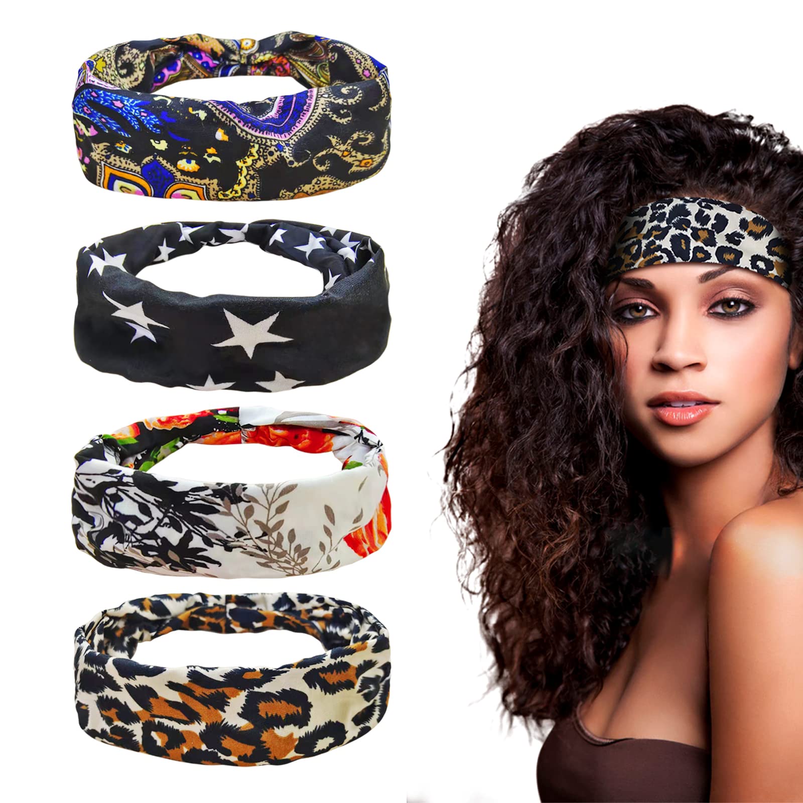Haarband Afrikanisches Breites Stirnband Boho Stirnband für Frauen Afrikanische Stirnbänder Damen Stirnband Geknotete Elastische Haarbänder Kreuz Haarwickel 4 Stück