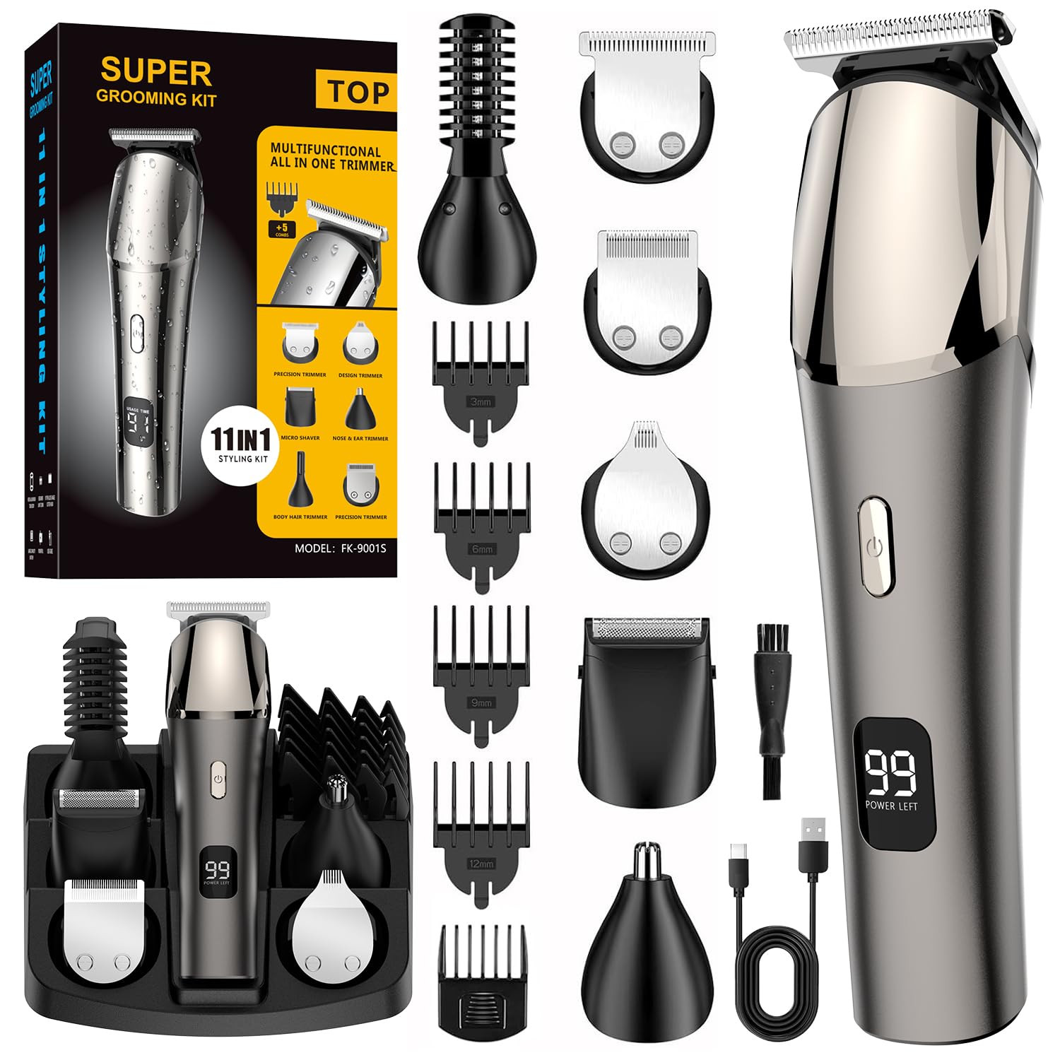 Hair Clippers Beard Trimmer for Men: 11-in-1 Hair Clippers USB Type-C Men Nose Trimmer Metal Aluminum Hair Trimmer Body Trimmer Facial Trimmers for Men Waterproof Electric Clippers for Men Grey