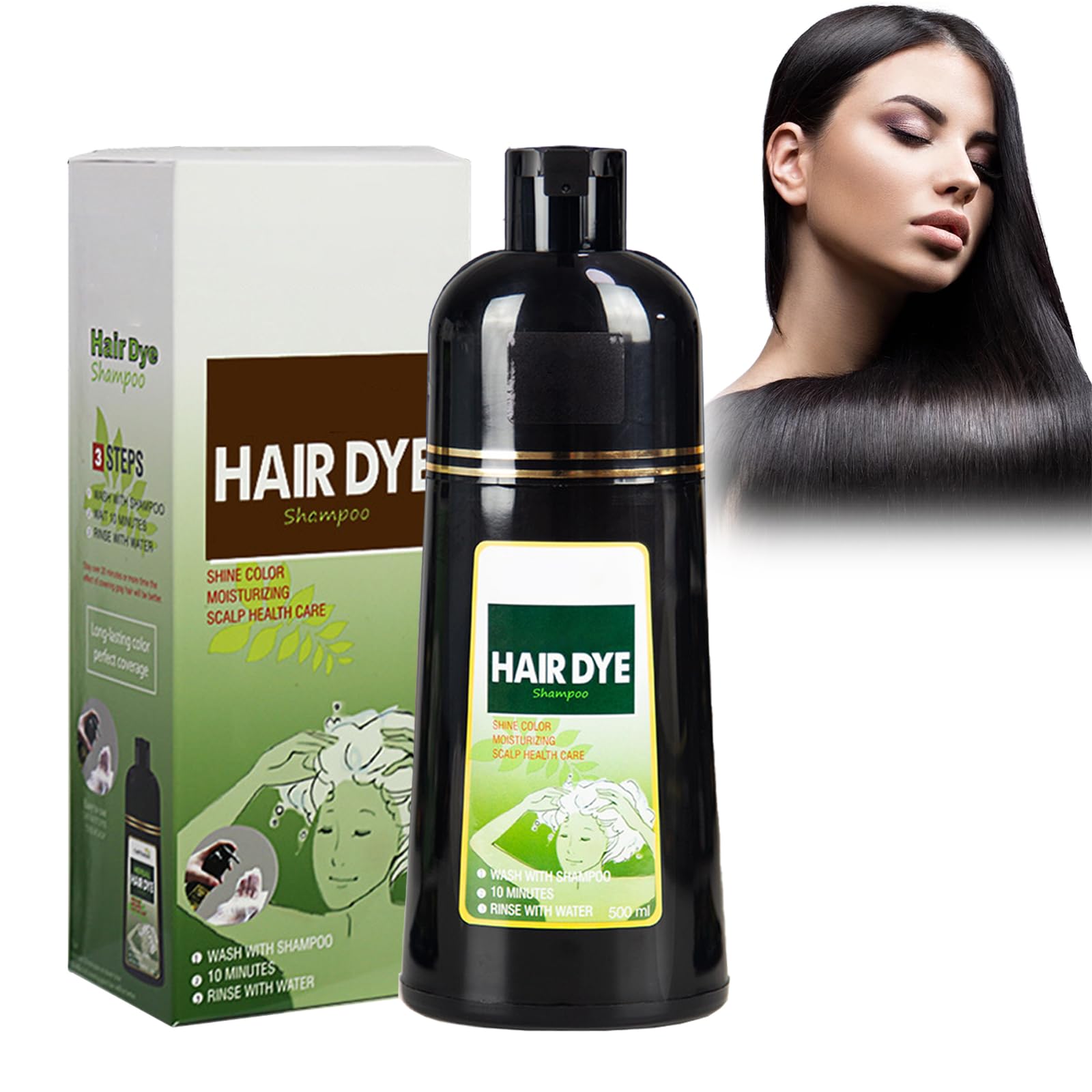 INSTRUCTIONS FOR USE Apply to damp hair, wait 10-20 minutes and rinse thoroughly.Best Gift: Hair color shampoo for men and women, a perfect gift for parents, lovers and friends. Using our shampoo can make your hair shinier, healthier and younger. Instant Black: This product is easy and convenient to use, you can dye your hair at home, just wear gloves and use it as a normal shampoo, just wait 10-20 minutes, you can dye your hair color you want. COVER GRAY HAIR: Suitable for all hair types, including coarse, fine and normal coarse hair, as well as smooth or curly hair textures. Effectively covers gray hair, so you no longer have to suffer from gray hair. Mild and Safe: The herbal extract formula of this hair color shampoo is mild and non-irritating, nourishes the scalp and replenishes the hair with necessary nutrients. Say goodbye to irritations and be spared from damage. Hair Color Shampoo 3-in-1: Hair Color Shampoo can be used not only as black hair color, but also as shampoo and conditioner. We can dye and care for your hair at the same time and it is very comfortable to use.Haarkleurshampoo, 500 ml instant shampoo voor zwart haar, kruidenshampoo, grijs haar, shampoo voor mannen en vrouwen, zwart, shampoo GEBRUIKSAANWIJZING Op vochtig haar aanbrengen, 10-20 minuten wachten en grondig uitspoelen.Beste cadeau: haarkleurshampoo voor mannen en vrouwen, een perfect cadeau voor ouders, geliefden en vrienden. Het gebruik van onze shampoo kan je haar glanzender, gezonder en jonger maken. Onmiddellijk zwart: dit product is gemakkelijk en handig in gebruik, je kunt je haar thuis verven, gewoon handschoenen dragen en het gebruiken als een normale shampoo, wacht gewoon 10-20 minuten, je kunt je haarkleur verven die je wilt. COVER GREY HAIR: Geschikt voor alle haartypes, inclusief grof, fijn en normaal grof haar, evenals gladde of krullende haarstructuren. Dekt grijze haren effectief af, zodat je niet meer last meer hoeft te hebben van grijze haren. Mild en veilig: de kruidenextractformule van deze haarkleurshampoo is mild en niet irriterend, voedt de hoofdhuid en vult het haar met de nodige voedingsstoffen op. Zeg vaarwel tegen irritaties en blijf gespaard van schade. Haarkleurshampoo 3-in-1: Hair Colour Shampoo kan niet alleen als zwarte haarkleur, maar ook als shampoo en conditioner worden gebruikt. We kunnen je haar tegelijkertijd verven en verzorgen en het is zeer comfortabel in gebruik.