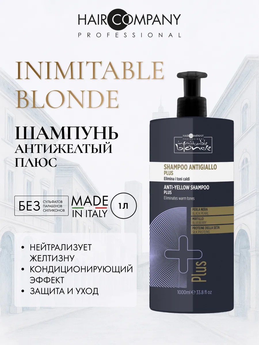 | Полное наименование товара | HAIR COMPANY Шампунь для волос блокирующий нежелательный желтый оттенок ПЛЮС INIMITABLE BLONDE, 1000 мл |