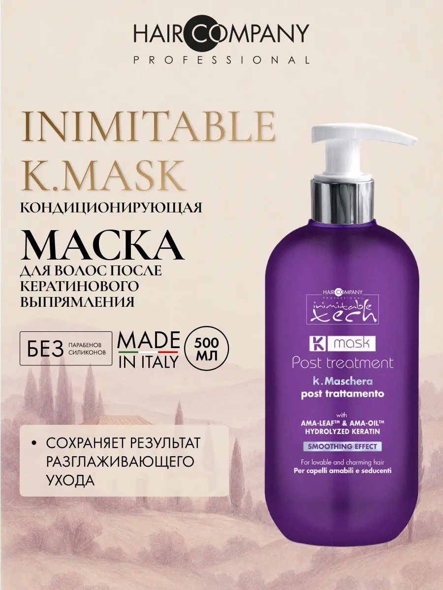 | Полное наименование товара | HAIR COMPANY К-маска для использования после выпрямления волос INIMITABLE TECH, 500 мл |