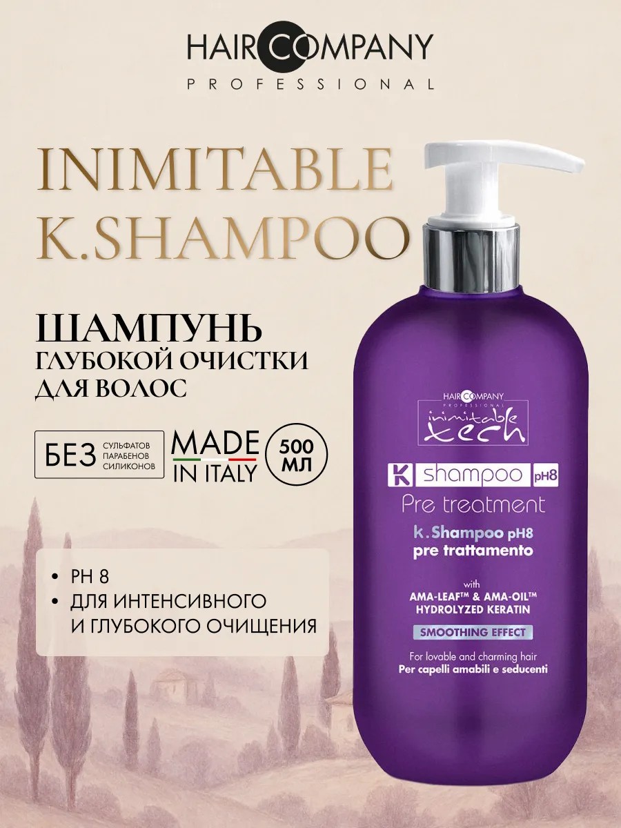 | Полное наименование товара | HAIR COMPANY К-шампунь для использования перед выпрямлением волос рH8, 500мл |