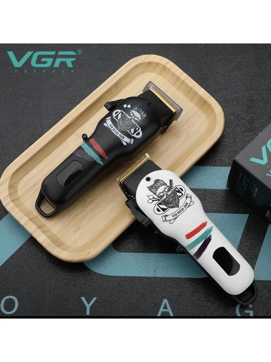 The VGR hair clipper is a professional cordless hair clipper with titanium blades and a self-sharpening function.