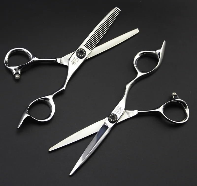 Good Quality 6.0 InchJP440C Barber Cutting Thinning Scissors Human Hair Shears for Salon Hairdressers Professional Beauty Hair Tools Description Blade Material: Japan 440C Length:6.0 Inch Hardness:62HRC Cutting rate:20 -30 Style:Professional Cutting ScissorsLifetime Warranty: We fully believe in the quality, durability and practicality of these hair cutting scissors, so we provide a lifetime warranty. Time will prove that these hair cutting scissors are very good, very durable, and can effectively perform their functions. We provide 100 satisfaction or refund. Investment is risk-free. Designed for Precision Trimming: This hair cutting scissors is designed for professionals who pay attention to weight, maneuverability, durability and ergonomics. This incredible hair cutting scissors can cut all kinds of hair easily. It is lighter than other hair clippers, passes through the hair easier, does not have more damage, has no split ends, and no pulls. Barber scissors are suitable for amateurs or professionals, hairdressers or salons. Ergonomic Handle: The hairdressing scissors adopt a non-slip handle, an ergonomic shape, and an integrated finger rest, which is comfortable and easy to cut. The eccentric handle of the hair cutting scissors adopts an anatomical thumb grip design, which can reduce thumb pressure, reduce the risk of fatigue after long-term use, and prevent carpal tunnel syndrome. Barber scissors provide stylists with more freedom of movement. Extremely Sharp And Fine Cutting: The blades of this professional hairdressing scissors are extremely sharp and durable, thanks to the extremely fine grinding and heat treatment process. The most obvious characteristics of these hair cutting scissors are extremely fine cut, ergonomic, easy to operate, sharp and durable, and unique in appearance. High-Quality Hair Cutting Scissors: The hair cutting scissors are made of high-quality Japanese stainless steel. Hair cutting scissors have the characteristics of heat resistance, corrosion resistance, rust resistance, and colorfastness. The hair cutting scissors use precision blades and hand-polished blades to reconcile, which can cut hair easily and evenly.