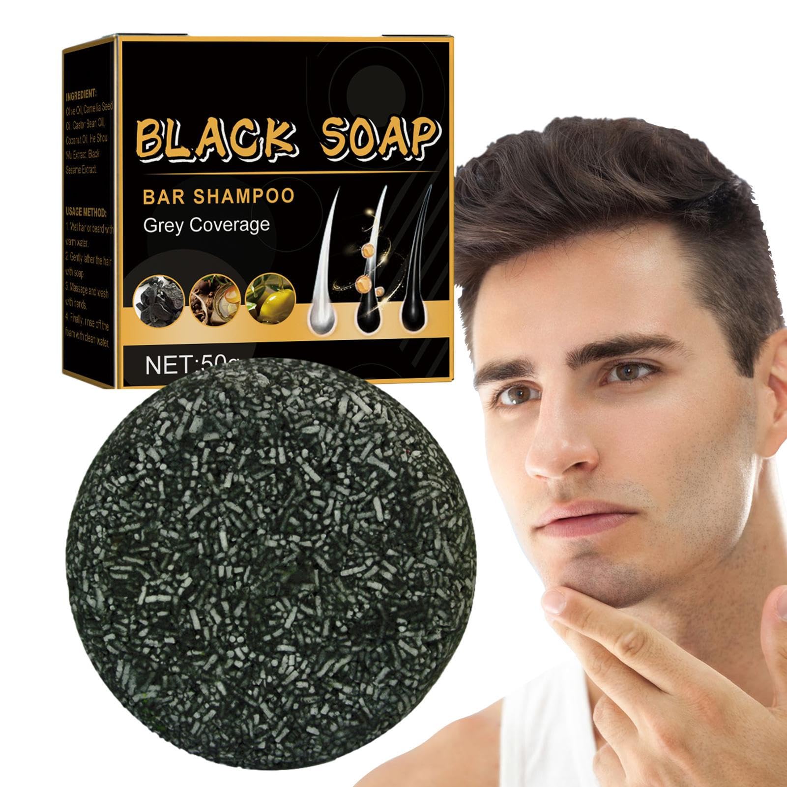 Hypoallergenic.Haarverduisterende Shampoo Bar Haarshampoo Zeep Zwart - Hydraterende grijze haardekking, voedende haarshampoo-zeep met reinigende werking SkudaHypoallergeen.