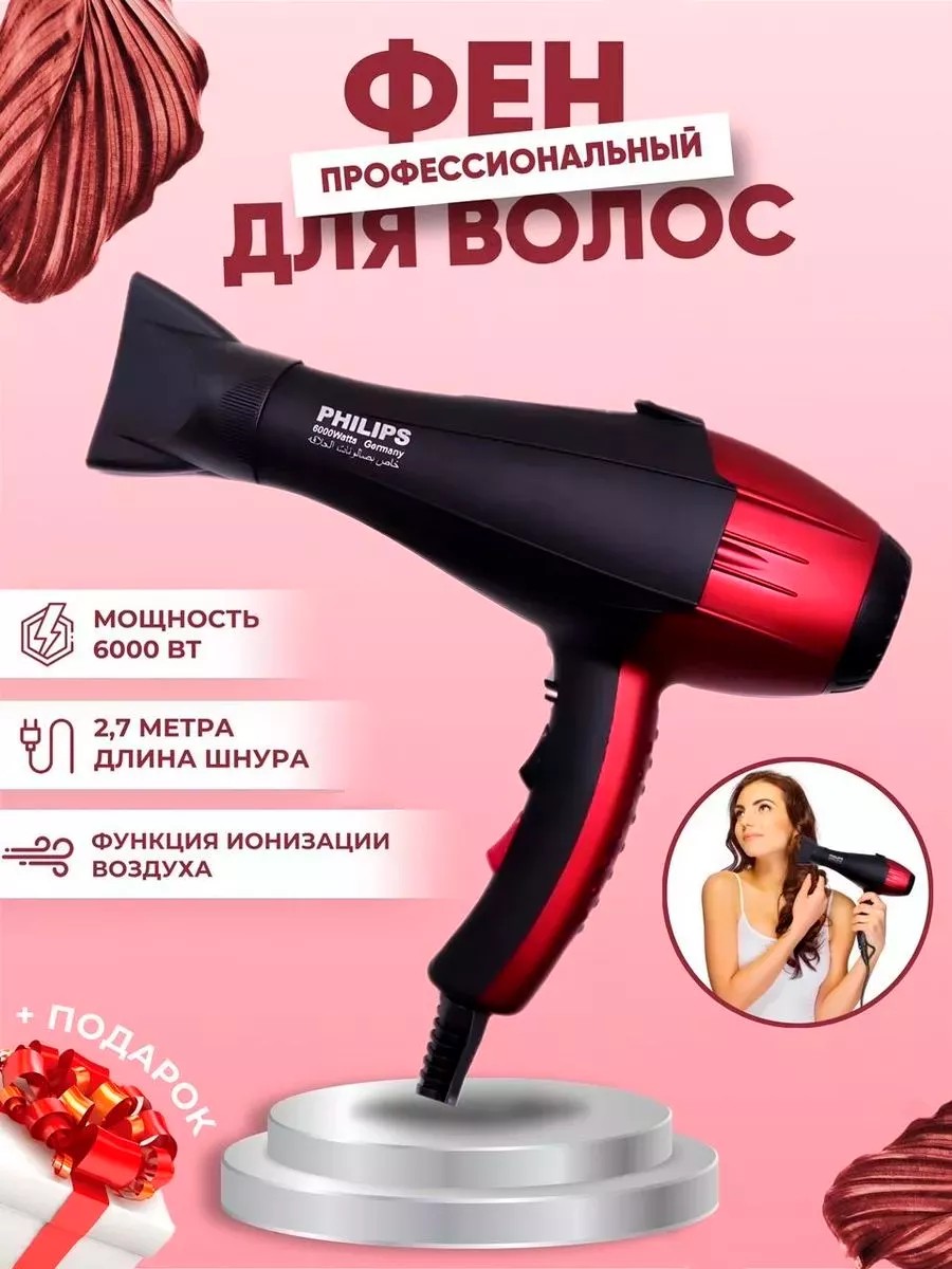 Благодаря мощности в 6000 Вт, выходящий воздух нагревается практически мгновенно. Вы можете регулировать скорость потока воздуха и температуру нагрева. Функция "холодный воздух" поможет зафиксировать прическу. Покупая наш товар вы никак не пожалеете так как вы можете его дать в подарок маме, бабушке, жене и любимой а также дочери на новый год и день рождения можно и на новоселье и любой праздник и без поводов. Покупайте наш мега супер фен и даруйте радость вашим близким и родным!