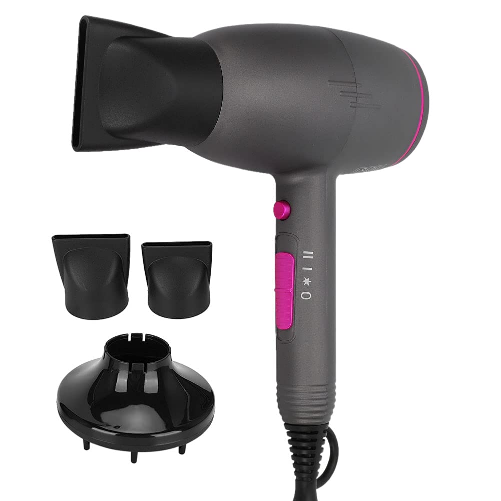 Feature: 1.Hammer Shape: This hair dryer features a hammer-shaped design, making it comfortable to hold and operate with a lightweight body, providing time-saving and effort-saving convenience. 2.Strong Power: This hair dryer has a powerful motor, allowing it to quickly dry your hair, reducing the time spent drying hair and achieving quick styling, while also being gentle on your hair. Specification:Condition: 100 Brand New Item Type: Hair Dryer Color: Purple Material: ABS Anion Function: Hair care function, remove static, make your hair smoothly and shiny. Line Length: Approx. 2.5m 8.2ft Package List:1 x Manual1 x Host 2 x Gathering Wind Nozzle 1 x Large Fan CoverHot and Cold Air Circulation: Hot and cold air circulation is designed to meet all your blow-drying needs. Whether it's for styling or gentle drying, it's easy to switch. Zero damage to the hair, showing a confident and dynamic hairstyle. The recirculating air design not only ensures lasting hairstyles, but also avoids damage to the hair from excessive hot air. SUITABLE FOR A VARIETY OF HAIRSTYLES: The blow dryer has excellent performance and can be adapted to a variety of hairstyles. From glossy straight hair to dynamic curls, it is easy to manage. The stable air supply ensures consistent results from blow-dry to blow-dry, giving you the desired hairstyle for a time. HUMANISED SWITCH DESIGN: simple and easy to use switch design, one key to control the blowing experience. Considering the user's safety, it is equipped with overheating protection mechanism, which guarantees you confidence every time you use it, abandoning safety concerns and enjoying your hairstyle. LOW NOISE AND HIGH EFFICIENCY: The hair dryer adopts DC motor technology to provide stable power output and adjustable wind speed to adapt to different hair style needs. Very low noise when working, high efficiency drying, DC motor design not only ensures efficient wind speed output, but also reduces energy consumption, providing you with environmental protection and energy saving experience. POWERFUL POWER: release strong power, easy to deal with wet hairstyles, intelligent temperature control design ensures that your hair gets the best care, say goodbye to overheating damage, innovative temperature control technology, according to different hair types automatically adjust the temperature to ensure fast blow drying without harming the hair.