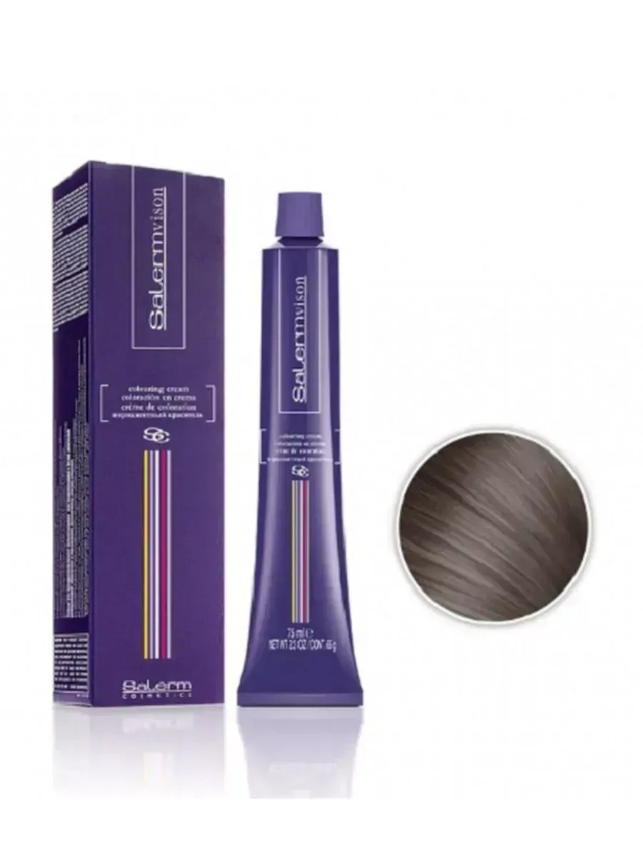 SALERMVISON is a permanent hair dye that guarantees vibrant and long-lasting hair color with complete gray coverage. This exclusive permanent micromolecular dye penetrates deep into the hair structure and guarantees maximum durability. The formula includes almond oil, wheat germ oil, and castor oil, which protect curls and give them an attractive appearance. A unique professional cocktail of coloring pigments allows you to achieve a rich, perfectly pure color. The product is economical in use, has a flexible texture, and a pleasant scent. The final shade is extremely rich and vibrant. HOW TO USE: Mix the dye and Aloe Vera developer in a 1:1.5 ratio. Exposure time: 30 minutes. For stubborn hair and gray coverage, mix with Aloe Vera developer 1:1. Exposure time: 40 minutes.