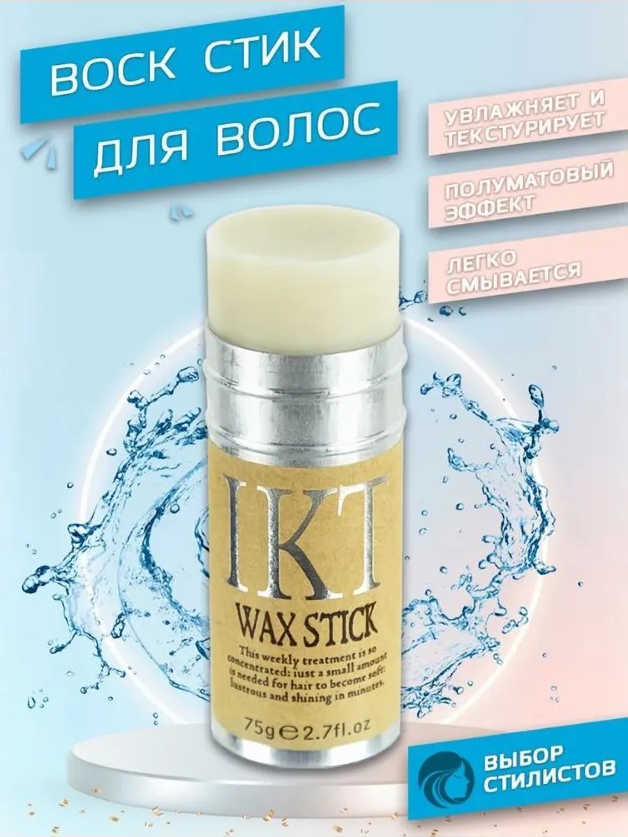 Воск для волос IKT выполнен на основе растительного воска, который гарантирует надежную фиксацию. Средство для укладки волос имеет в своем составе касторовое масло и экстракт авокадо. Дополнительный компонент - пчелиный воск, который необходим для объема волос и придания текстуры прическе.\n\nПаста для укладки волос мужская выполнена в удобном для использования стике, подходящем для причесок любой длины. Применяется паста для волос мужская сухим и мокрым способом. Универсальность и ненавязчивый аромат сделали пасту для волос отличным выбором как для девушек, так и для парней.\n\nПодходит воск для бороды и усов, позволяя придать им привлекательный внешний вид. С ним быстрее происходит укладка волос для мужчин, что позволяет значительно сэкономить время на утренних сборах. Он станет настоящей находкой для укладки волос, придавая им лишь легкую матовость. Воск для волос женский поможет в создании причесок, уложив все непослушные пряди. Паста для волос выполнена в небольшом флаконе.\n\nОбъем: 75 мл\nВес: 75 г\nСтрана-изготовитель: Китай\nТип: Гель для волос\nТип волос: Для всех типов волос\nЭффект: Стайлинг\nПол: Унисекс