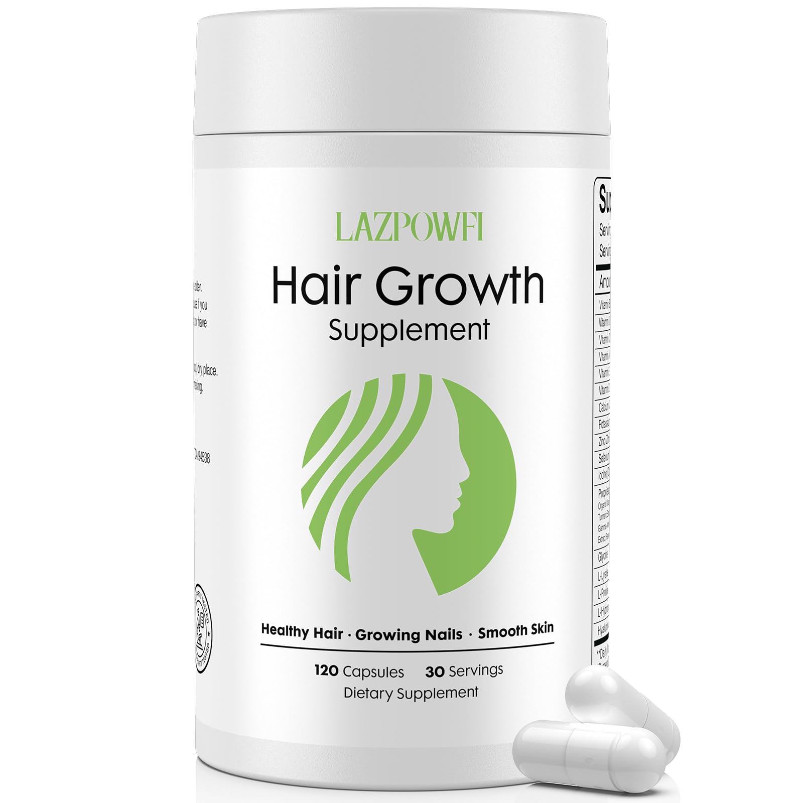 Keep taking Take 4 capsules daily for 3-6 months. (Effects vary from person to person and are not a substitute for medical treatment). A high dose of biotin supports the health of your hair, nails, and skin. It helps protect your hair from daily stress and damage, reducing breakage while keeping it vibrant and elastic. Suitable for men and women Our GMP-certified facility and ingredients are gluten-free, non-GMO, soy-free, and dairy-free. Designed hair vitamins for hair loss for women of all ages to help maintain thicker, fuller hair. Rich in essential vitamins and nutrients Enriched with vitamins A, C, D, E and more, LAZPOWFI hair vitamins are designed to replenish essential nutrients needed for hair, skin and nails. Glow in beauty from the inside out with our all-in-one hair growth products. 32-IN-1 Science-backed ingredients Carefully crafted with a science-based foundation, this vital hair complex contains key ingredients like Biotin 10000mcg, 13 vitamins, 4 amino acids, and Saw Palmetto Extract, which is carefully selected to support scalp nourishment. Supports healthy, thick, strong hair LAZPOWFI hair growth supplement supports the maintenance of healthy, thick, and strong hair growth. Whether you are dealing with thinning hair or just want to keep your hair looking vibrant, these hair growth vitamins provide essential nutrients.