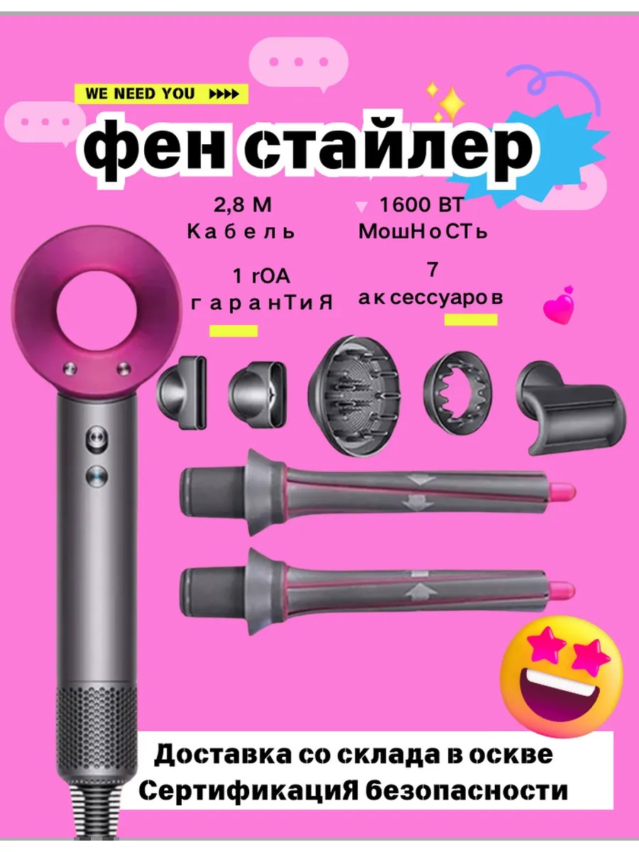 фен для волос+ 2 шт плойка для локонов 7 в 1 стайлер