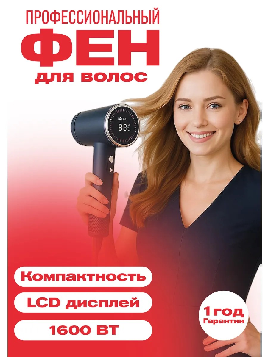 Компактный фен M-7 Hair Dryer для укладки волос с бесщеточным мотором и LCD-дисплеем.