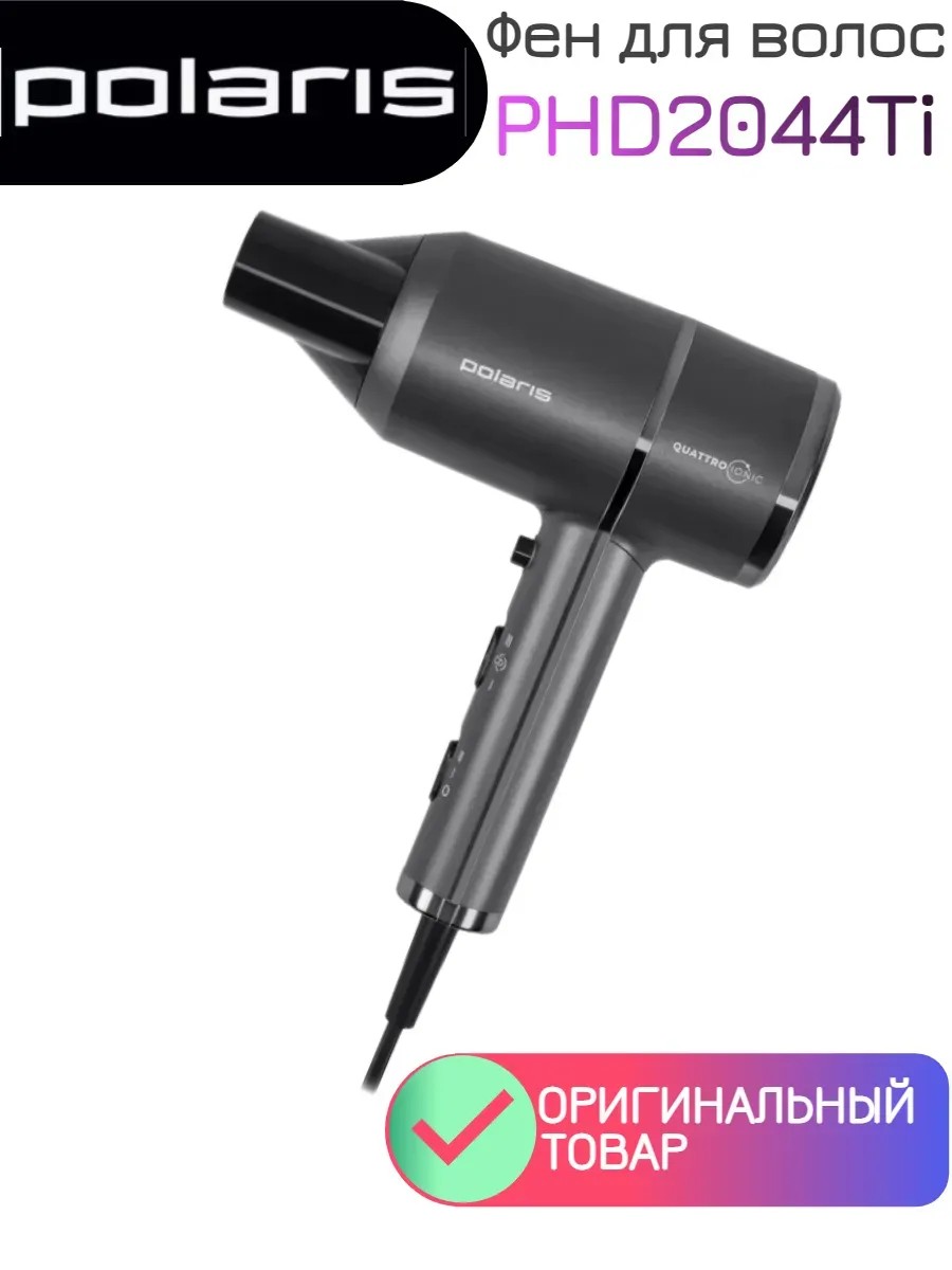 Immerse yourself in a world of flawless styling with our modern and compact Polaris PHD 2044Ti Quattro Ionic hair dryer, designed for quick and gentle styling. This modern hair dryer features two magnetic attachments—a narrow concentrator and a standard concentrator. The standard magnetic concentrator is for drying wet hair. Both concentrators feature DuoProtect technology—athermal protection with double walls for self-regulating surface temperature. It distributes heat where it's needed and protects against discomfort if you touch the attachment while drying with hot air. The ultra-powerful built-in QUATTRO Ionic ion generator provides a 4D effect for healthy hair, giving your locks unrivaled care. Ions not only combat static electricity but also moisturize hair, preserve the vibrancy of its color, and prevent split ends. The hair dryer has independent control with 3 temperature and 2 speed modes. A removable filter grill protects your hair dryer from dirt. Experience the power of professional styling in your hands with our Polaris hair dryer, which makes styling simple, effective, and safe for your beauty!