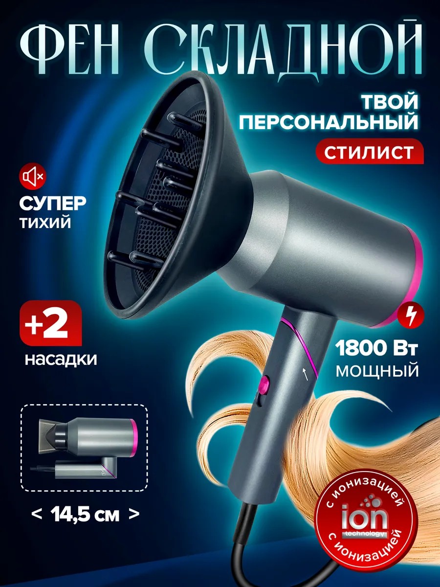 Этот мощный дорожный складной фен станет незаменимым помощником в создании идеальной прически.