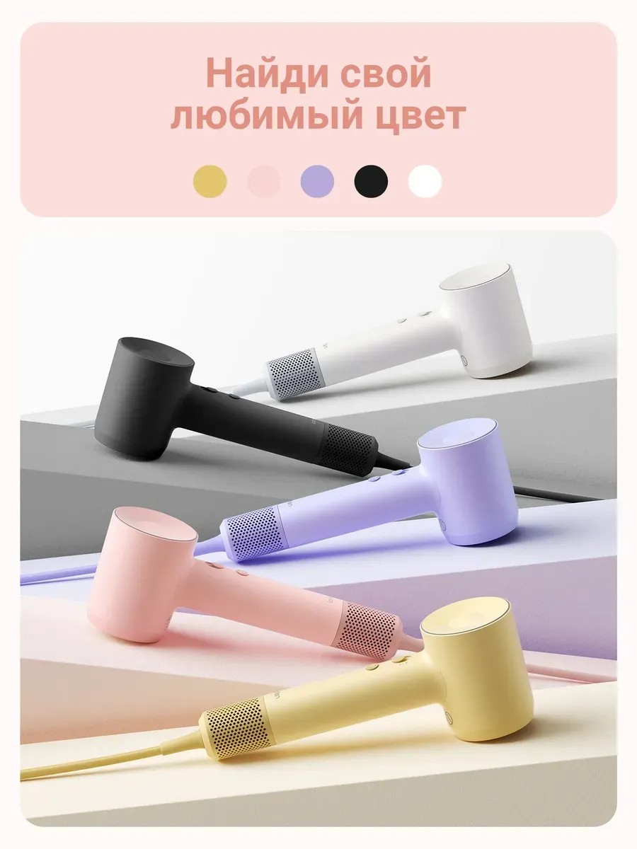 The Laifen SE 2 hair dryer provides gentle and effective drying thanks to its powerful design and modern construction. Its motor spins at 108,000 rpm, generating an airflow of up to 21.5 meters per second, significantly reducing drying time. A built-in intelligent temperature control system monitors and regulates airflow 80 times per second, preventing overheating and protecting hair from damage. The dryer features multiple temperature settings: cool air for setting your style, warm air (approximately 50°C) for gentle care, and hot air (approximately 85°C) for quick drying. Additionally, there is a temperature cycling mode that automatically switches the temperature for maximum hair protection, and a special children's mode with gentle temperature settings (38°C and 48°C), suitable for children's sensitive skin. The kit includes three attachments: a smooth nozzle for everyday drying and styling, a concentrator nozzle for precise airflow direction, and a diffuser nozzle for adding volume and natural curl shape. The body of the hair dryer is made of a durable combination of nylon and fiberglass, making the device lightweight (only 390 grams), ensuring comfortable use even with prolonged use. A convenient 2.5-meter cable allows for freedom of movement while drying. Laifen SE 2 is available in several colors: yellow, black, purple, and white. The noise level of the device does not exceed 59 dB, making it comfortable to use at any time of day. The warranty period is 2 years.