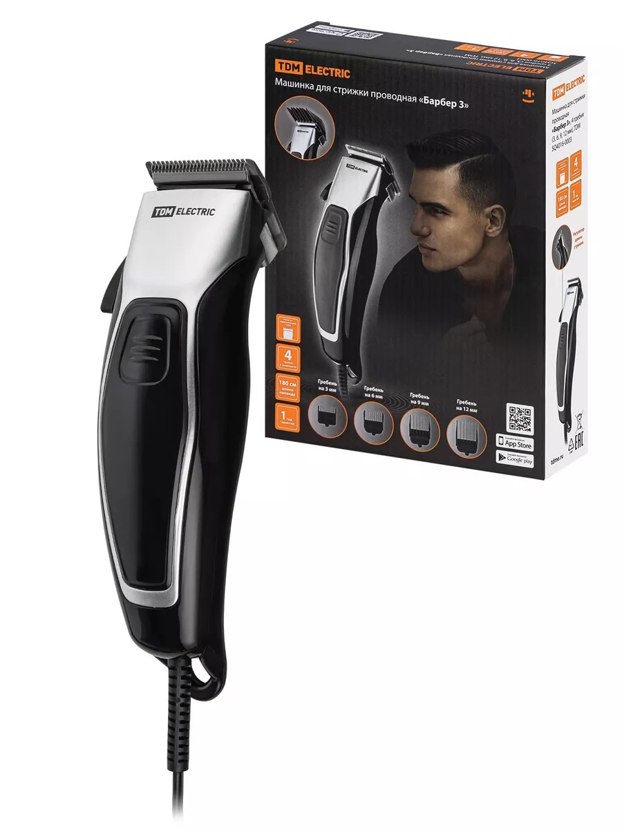 Машинка для стрижки волос ""Барбер 3"" от компании TDM ELECTRIC — идеальный инструмент для создания стильных причесок у вас дома! Профессиональная электрическая машинка станет незаменимым помощником для мужчин и женщин, обеспечивая легкость и комфорт в процессе стрижки. С ""Барбер 3"" вы сможете подровнять волосы, бороду, сделать стрижку для детей, включая новорожденных малышей.