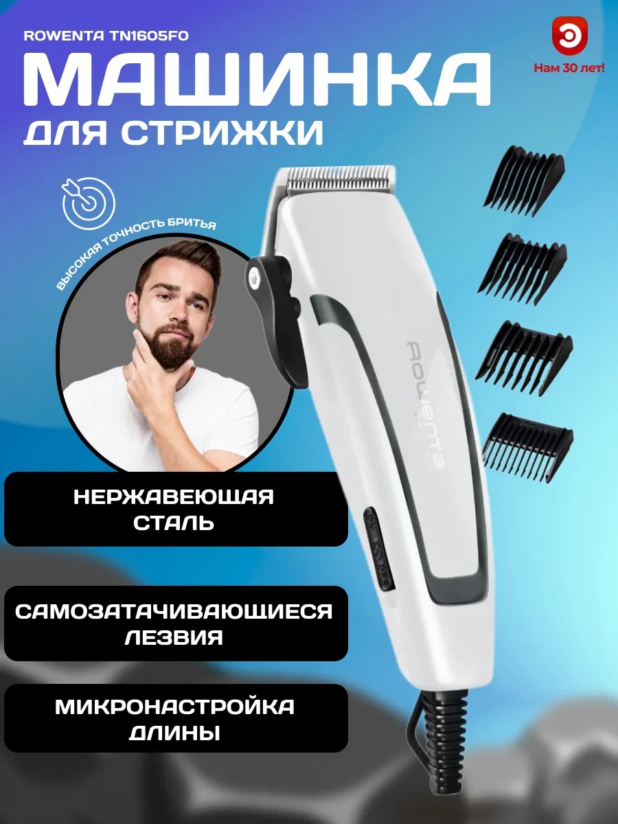 This beauty and health household accessory will make the perfect gift for your husband, friend, brother, boyfriend, teenager, dad, grandfather, or colleague for New Year's, Christmas, Valentine's Day, birthday, or anniversary. This unique Rowenta clipper combines the functionality of a trimmer for trimming your hair or beard. It's not just a men's beard clipper; it's a complete tool for creating a stylish look.