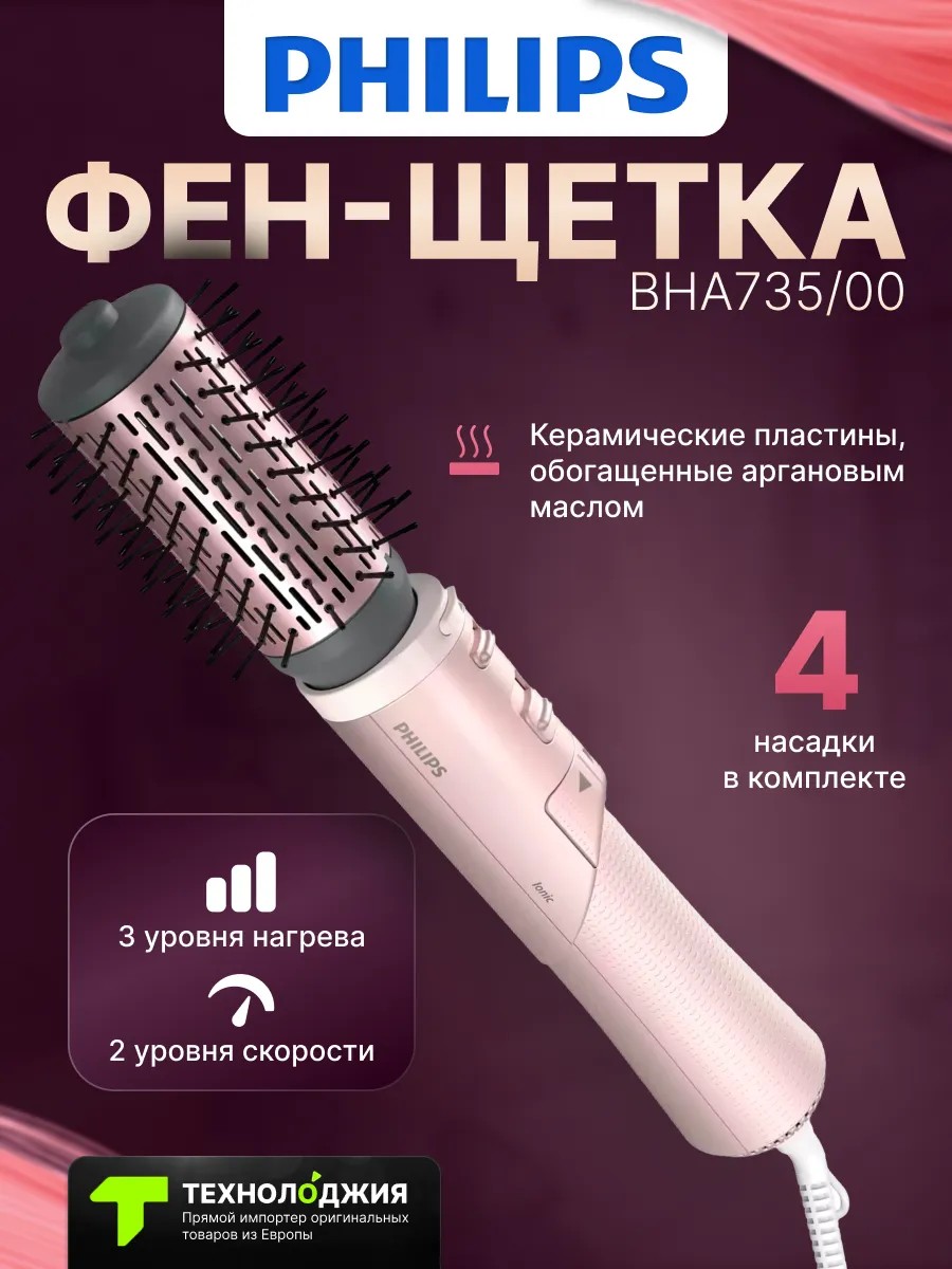 Фен-щетка Philips BHA735/00 – это многофункциональное устройство, которое поможет вам создать стильную прическу с легкостью. Она сочетает в себе функции фена и щетки, что делает укладку быстрой и удобной.