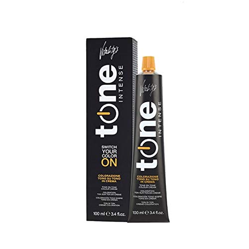 Vitality's Tone Intense is a gentle, ammonia-free, tone-on-tone hair color. It washes out gradually, leaving no roots visible, and does not retain the base color, providing exceptionally natural results. The color covers up to 70 of gray hair, gives hair natural highlights, and revitalizes the cosmetic color. Thanks to its creamy texture, it adheres perfectly to the hair. Warning: Wear suitable gloves. Do not use if the scalp is sensitive, irritated, or injured. Keep out of reach of children. Application exclusively by qualified professionals. The use of this product requires professional expertise. We accept no liability. Contents: 100 ml