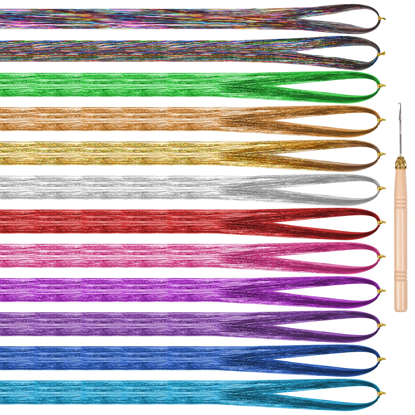Function: Shiny Lametta hair is perfect for fashion girls to celebrate and make yourself the center of attention. Our hair wire is long enough and can be tailored to different lengths as required. You can send these art hair kits to your family and friends as useful and beautiful gifts for birthdays and Christmas. These colored strands of hair can help you to extend and style your hair quickly and easily, which saves you time and effort. Specification: Material: PET gold thread Color: as shown Size: as shown The package includes: 2400 x colored strands of hair 1 x crocheted A notice: Carefully change with tools, otherwise you could injure yourself.suitable for: the hair lametta is suitable for daily use and is also perfect for birthday parties, music festivals, festive events, barbashes, Halloween and themed parties.Lift shiny strands from the crowd.User-friendliness: reduced hair and scalp damage from hair dye.Wigs can be cut, lured and braided and can be used by adults and children, which makes it easy to quickly create a variety of hairstyles at home.haar extension set: The hair extension set has 12 colors, each color has 200 parts, there are a total of 2400 wigs The length of the metal hair extension is 120 cm, you can cut it according to the length of your hair.1 piece of crochet hook to help you weave the wig to the hair.12 sparkling colors: multicolored, colorful, light violet, purple, sky blue, royal blue, red, peach pink, gold, champagne, silver, green Enough to meet your needs of clothing, you can combine different colored wigs for a captivating and striking effect.hohe quality: Colorful hair extensions consist of PET gold thread.High temperature resistance, not easy to break, no bleaching, soft and smooth, easy to care for.Funktion: Glänzendes Lametta-Haar ist perfekt für Fashion-Girls, um zu feiern und dich zum Mittelpunkt der Aufmerksamkeit zu machen. Unser Haardraht ist lang genug und kann je nach Bedarf auf verschiedene Längen zugeschnitten werden. Sie können diese Kunsthaar-Kits als nützliche und schöne Geschenke für Geburtstage und Weihnachten an Ihre Familie und Freunde senden. Diese Farbiger Haarsträhnen können Ihnen helfen, Ihr Haar schnell und einfach zu verlängern und zu stylen, wodurch Sie Zeit und Mühe sparen. Spezifikation: Material: PET-Goldfaden Farbe: wie abgebildet Größe: wie abgebildet Das Paket beinhaltet: 2400 x Farbiger Haarsträhnen 1 x gehäkelt Hinweis: Gehen Sie vorsichtig mit Werkzeugen um, sonst könnten Sie sich verletzen.Geeignet für: Das Haar Lametta ist für den täglichen Gebrauch geeignet und eignet sich auch perfekt für Geburtstagsfeiern, Musikfestivals, festliche Veranstaltungen, Barbashes, Halloween und Themenpartys. Glänzende Strähnen heben Sie von der Masse ab. Benutzerfreundlichkeit: Reduziert Haar- und Kopfhautschäden durch Haarfärbemittel. Perücken können geschnitten, gelockt und geflochten werden und können von Erwachsenen und Kindern verwendet werden, was es einfach macht, schnell eine Vielzahl von Frisuren zu Hause zu kreieren. Haarverlängerungsset: Das Haarverlängerungsset hat 12 Farben, jede Farbe hat 200 Teile, es gibt insgesamt 2400 Perücken Die Länge der Haarverlängerung aus Metall beträgt 120 cm, Sie können sie entsprechend der Länge Ihres Haares zuschneiden. 1 Stück Häkelnadel, um Ihnen zu helfen, die Perücke an das Haar zu weben. 12 funkelnde Farben: mehrfarbig, bunt, hellviolett, lila, himmelblau, königsblau, rot, pfirsichrosa, gold, champagner, silber, grün genug, um Ihren Kleidungsbedürfnissen gerecht zu werden, können Sie verschiedenfarbige Perücken für einen fesselnden und auffälligen Effekt kombinieren. Hohe Qualität: Bunte Haarverlängerungen bestehen aus PET-Goldfaden. Hohe Temperaturbeständigkeit, nicht leicht zu brechen, kein Ausbleichen, weich und glatt, pflegeleicht.Haar Lametta, 2400 Stränge 12 Farben Haarlametta Glitzer Strähnen Haare, Farbiger Haarsträhnen, Haarteil Haarverlängerung Strähnen Extensions mit Häkeln, Haarteile für Frauen Mädchen 120cm