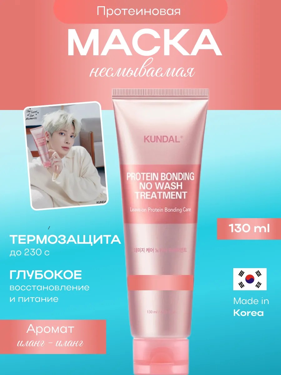 Маска для волос несмываемая с термозащитой PROTEIN BONDING NO WASH TREATMENT 130ML (KUNDAL) с ароматом Иланг Иланг (Ylang Ylang).
