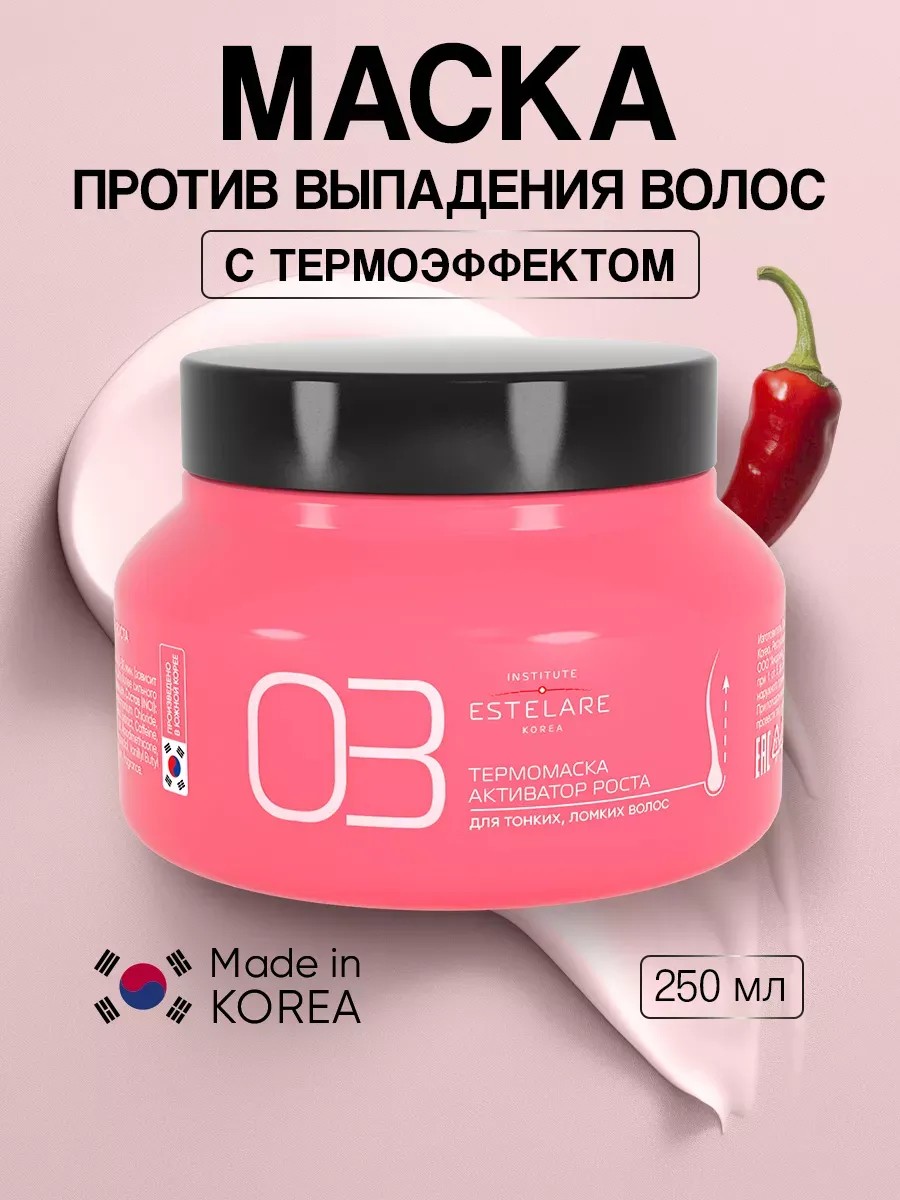 Восстанавливающая маска для волос с экстрактом красного перца борется с выпадением, оказывает разогревающее действие, ускоряя рост новых волос. Экстракт красного перца, кофеин и биотин активизируют кровообращение, пробуждают 'спящие' луковицы, стимулируют рост новых волос. Ухаживающие компоненты как пантенол, шелк растительные экстракты защищают волосы от повреждений, укрепляют волосы, делая их более густыми и сильными. Термомаска 'активатор роста' придает волосам естественный объем от корней, локоны выглядят более шелковистыми и блестящими. Насыщенная формула обеспечивает надеждную защиту от повреждений, разглаживает структуру волоса, делая их более послушными и гладкими. Профессиональная маска подходит для любого типа волос (кудрявых, окрашенных, вьющихся, мужских). Восстанавливающая маска предназначена для тонких, ломких, склонных к выпадению волос. Для достижения наилучшего результата рекомендуется использовать совместно с шампунем и бальзамом данной серии. Маска для волос с перцем имеет разогревающий эффект. Избегать попадания на слизистые участки. Производство - Южная Корея. Косметика с салонным эффектом