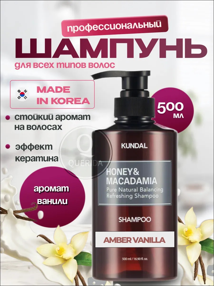 KUNDAL Кундал бессульфатный Шампунь для волос Amber Vanilla (аромат ванили) , 500 мл.