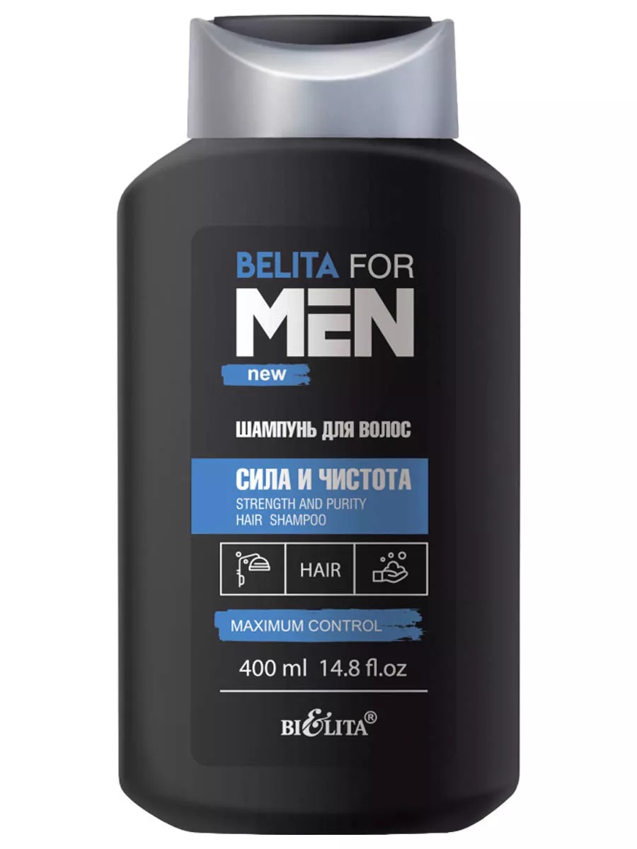 Belita for Men Strength and Purity Hair Shampoo 400ml. Belita for Men Strength and Purity Hair Shampoo is designed for those who want to unlock the secrets of their hair and highlight their masculine charm. The shampoo's unique formula includes black pepper extract and keratin, which deeply cleanse the scalp and stimulate healthy hair growth. With this shampoo, you can unleash the power of your purity and let it speak of your confidence and masculinity. Suitable for all hair types, the shampoo comes in a convenient 400ml bottle, perfect for daily use and travel. Experience strength and purity with Belita for Men shampoo, and your hair will speak for itself of your masculinity and charm! This shampoo is designed to unlock the secrets of your hair that highlight your masculine charm. Active ingredients (black pepper extract and keratin) deeply cleanse the scalp and stimulate healthy hair growth. Unleash the power of purity and let your hair speak of your masculine charm and self-confidence! How to use: Apply to wet hair, lather and rinse with water. Ingredients: Aqua (Water); Sodium Laureth Sulfate; Cocamidopropyl Betaine; Sodium Chloride; Cocamide MIPA; Laureth-4; PEG-7 Glyceryl Cocoate; Glycol Distearate; Laureth-4; Cocamidopropyl Betaine; Polyquaternium-39; Parfum (Fragrance); Guar Hydroxypropyltrimonium Chloride; Maris Sal; Palmaria Palmata (Algae) Extract; Ulta Enteromorpha (Algae) Extract; Himanthalia Elongata (Algae) Extract; Ulva Lactuca (Algae) Extract; Porphyra Umbilicalis (Algae) Extract; Disodium EDTA; Piper nigrum Extract; Benzyl Alcohol; Methylchloroisothiazolinone; Methylisothiazolinone; Aqua (and) Hydrolyzed Keratin; Citric Acid; CI 42090 (FD&C Blue No. 1); CI 47005 (D&C Yellow No. 10); Hexyl Cinnamal