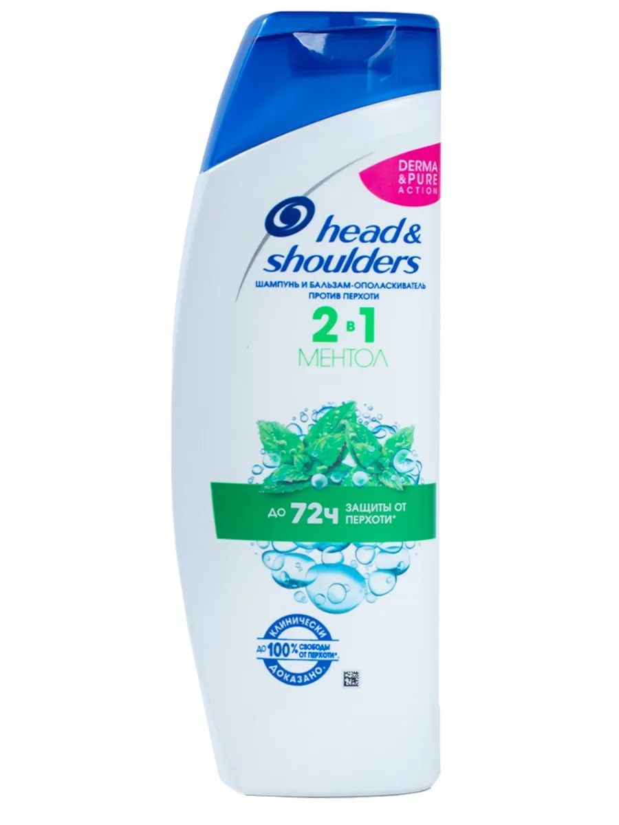 Шампунь и бальзам-ополаскиватель против перхоти Head&Shoulders с ментолом бережно ухаживает за волосами и кожей головы, эффективно очищает их, увлажняя и придавая ментоловую свежесть. Шампунь содержит активные действующие вещества пиритион цинка и карбонат цинка, благодаря которым обеспечивается до 100% свободы от перхоти. Усовершенствованная формула средства Derma&Pure протестирована дерматологами, pH-сбалансирована, усилена антиоксидантами и не содержит парабенов, фосфатов и парафинов. Шампунь подходит для ежедневного использования для всех типов волос.
