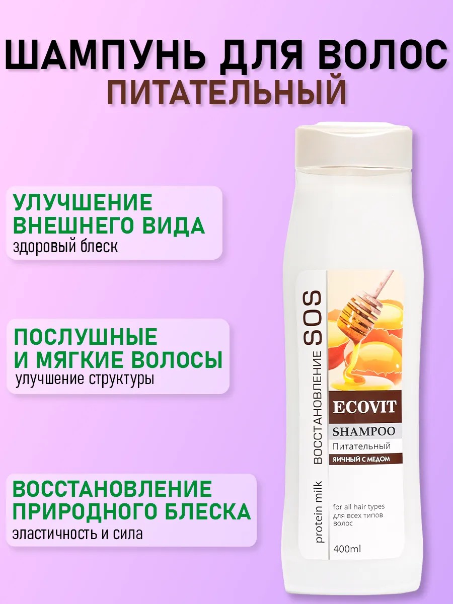 Шампунь для волос питательный ECOandVIT SOS "Яичный с медом" и молочными протеинами наполняет волосы активными компанентами, которые входят в его состав. Помогает вернуть природный блеск, эластичность, силу улучшает внешний вид.
