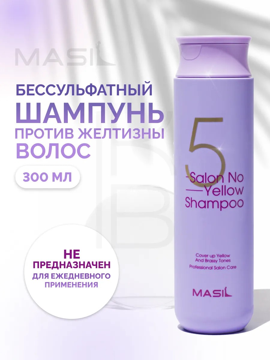 Профессиональный оттеночный шампунь против желтизны волос MASIL 5 SALON NO YELLOW SHAMPOO. Тонирующий шампунь разработан для ухода за окрашенными в блонд, осветлёнными и мелированными волосами, нейтрализации желтизны и сохранения цвета ярким и насыщенным.