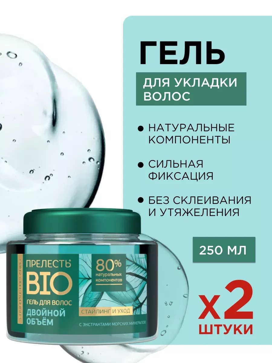 Гель Прелесть BIO Двойной Объем — это идеальное решение для тех, кто ценит качественный уход и натуральные компоненты в своих средствах для стайлинга. Морские минералы в составе способствуют восстановлению структуры волос, утолщают их, благодаря чему достигается дополнительный объем. Средство содержит 95% натуральных компонентов, сочетая в себе сильную фиксацию до 24 часов и заботу о здоровье ваших локонов. Оснащенный уникальным ухаживающим комплексом 7 Healthy Herbals на основе пантенола и семи лечебных трав, Прелесть BIO придает не только превосходный блеск, но и обеспечивает восстановление, питание и бережную заботу для кончиков и секущихся прядей. Этот продукт с сильной фиксацией подходит для всех типов волос, для кудрявых и тонких, обеспечивает прикорневой объем, который делает прическу более пышной. Надежная фиксация позволяет создать любую укладку с эффектом мокрых волос, сохраняя ее идеальной на протяжении всего дня. Прелесть BIO — это не просто стайлинг, а полноценный уход за локонами, заботящийся о их здоровье и внешнем виде. Жидкий кастард подойдет как для женщин, так и для создания мужских причесок, бороды и усов. Фиксатор для укладки не перебивает парфюм, легко вычесывается или смывается шампунем. Набор из двух штук сделает покупку еще приятнее и выгоднее. Подарите своим локонам натуральный уход и качественный стайлинг с гелем Прелесть БИО.