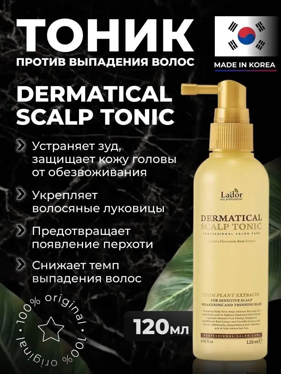 Lador Scalp Hair Helper Tonic. Лечебный тоник от Lador содержит комплекс натуральных растительных компонентов, которые работая в совокупности способствуют эффективному оздоровлению кожи головы. Средство обладает себорегулирующими свойствами, успокаивает кожу головы, снимает зуд, покраснения, устраняет шелушения. Нормализует патогенную микрофлору эпидермиса, уничтожает грибки и болезнетворные бактерии. Избавляет от перхоти, в перспективе предупреждает её повторное появление. Показан при симптомах себореи. Питает фолликулы, улучшает качество растущих волос. Масло перечной мяты обладает антибактериальной и противогрибковой активностью, предупреждает размножение болезнетворных бактерий. Предупреждает возникновение воспалений. Укрепляет стенки сосудов, снижая их ломкость. Дарит ощущение чистоты, свежести и прохлады. Экстракт женьшеня улучшает кровообращение в тканях, тонизирует кожный покров. Витамин Е и экстракт зелёного чая усиливают антиоксидантный потенциал друг друга, обеспечивая клеткам эпидермиса надёжную защиту от повреждения свободными радикалами. Сок алоэ в составе восстанавливает гидролидный баланс кожи головы. Никотинамид ускоряет деление клеток в волосяном фолликуле. Не только ускоряет рост волос, но и укрепляет их, а также способствует активному росту новых. Способ применения: с небольшого расстояния распылить достаточное количество средства на чистую, сухую кожу головы, осуществить легкий массаж, растирая состав по поверхности кожи головы. Не смывать. Во время лечения рекомендуется использовать курсом 3-4 недели, нанося тоник 2-3 раза в день. В качестве профилактического использования достаточно использовать тоник 2 раза в неделю.
