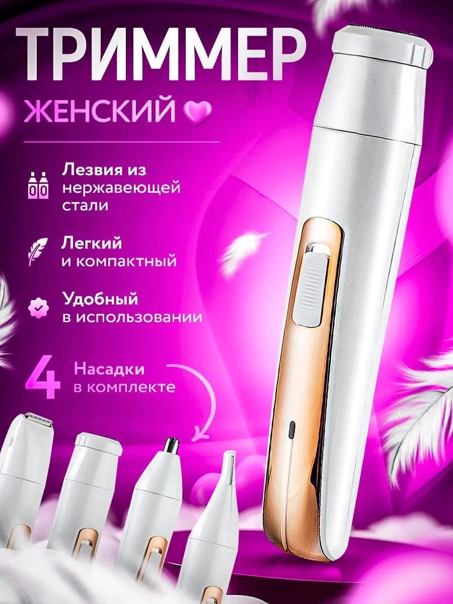 Универсальный триммер со сменными насадками предназначен для носа, ушей, интимных зон, бровей и окантовки. Бритвенные насадки обеспечивают эффективное и быстрое подравнивание волос. Устройство работает от встроенного аккумулятора, заряжается от ноутбука, пауербанка или адаптера, удобно в использовании. Мощность устройства 5W, в комплекте имеется четыре сменные насадки: прямая насадка-триммер, круглая бритвенная, насадка для носа и ушей и отдельная насадка для бровей, а так же щеточка для чистки и кабель для зарядки.