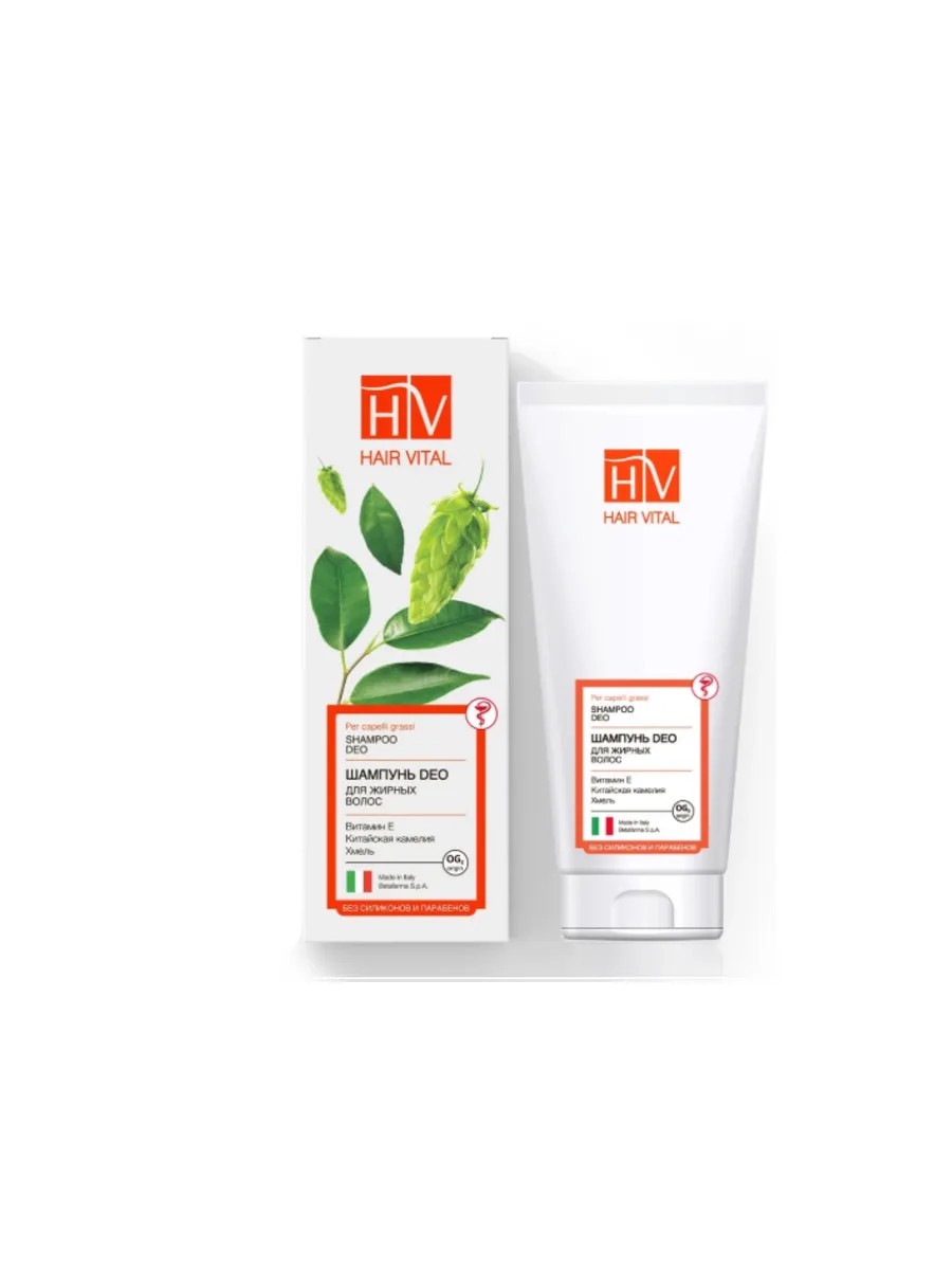 Шампунь для жирных волос Хаир Витал ДЕО глубоко очищает волосы и кожу головы, избавляет от сального блеска и препятствует быстрому загрязнению, защищая от неблагоприятных факторов. Благодаря активным компонентам в составе средства для волос Хаир Витал, таким как витамин Е, экстракт хмеля, экстракт китайской камелии, OG2 (уникальная формула против выпадения волос) увлажняющий шампунь от жирности волос оказывает комплексное уходовое действие на волосы и кожу головы. Нормализует секрецию сальных желез. Обеспечивает защиту от посторонних запахов. Препятствует быстрому загрязнению. Эффективно очищает волосы от излишнего жира. Возвращает волосам силу, пышность и объем. Экстракт хмеля является противовоспалительным средством, устраняет перхоть, очищая кожу головы и восстанавливая её жировой баланс. Экстракт китайской камелии (зеленый чай) восстанавливает волосяной стержень, питает кожу головы, укрепляет фолликулы, восстанавливает структуру волос. Витамин Е защищает волосы от повреждения, уменьшает статическое электричество. Шампунь был специально разработан для женщин и мужчин всех возрастов. Главная задача активных компонентов Hair Vital - улучшение питания и стимуляция зоны роста волоса, воздействие на кровеносные сосуды, активация волосяных луковиц, забота о коже головы, и, конечно, уход за длиной. Только в средствах по уходу за волосами Hair Vital содержится комплекс аминокислот OG2 - это уникальная разработка итальянских ученых лаборатории Betafarma S.p.A. Эффективность формулы клинически доказана: способствует стимуляции роста волос в 95% случаев, значительно сокращает выпадение волос в 95% случаев, существенно увеличивает густоту волос (количество волос на см2) в 85% случаев. В составе шампуня не содержится силиконов и парабенов, что делает его натуральным и безопасным для ухода за волосами. Итальянский шампунь HV - это профессиональный косметический продукт, который позволяет получить результат, как после посещения салона красоты. Идеальный подарок на 8 марта !