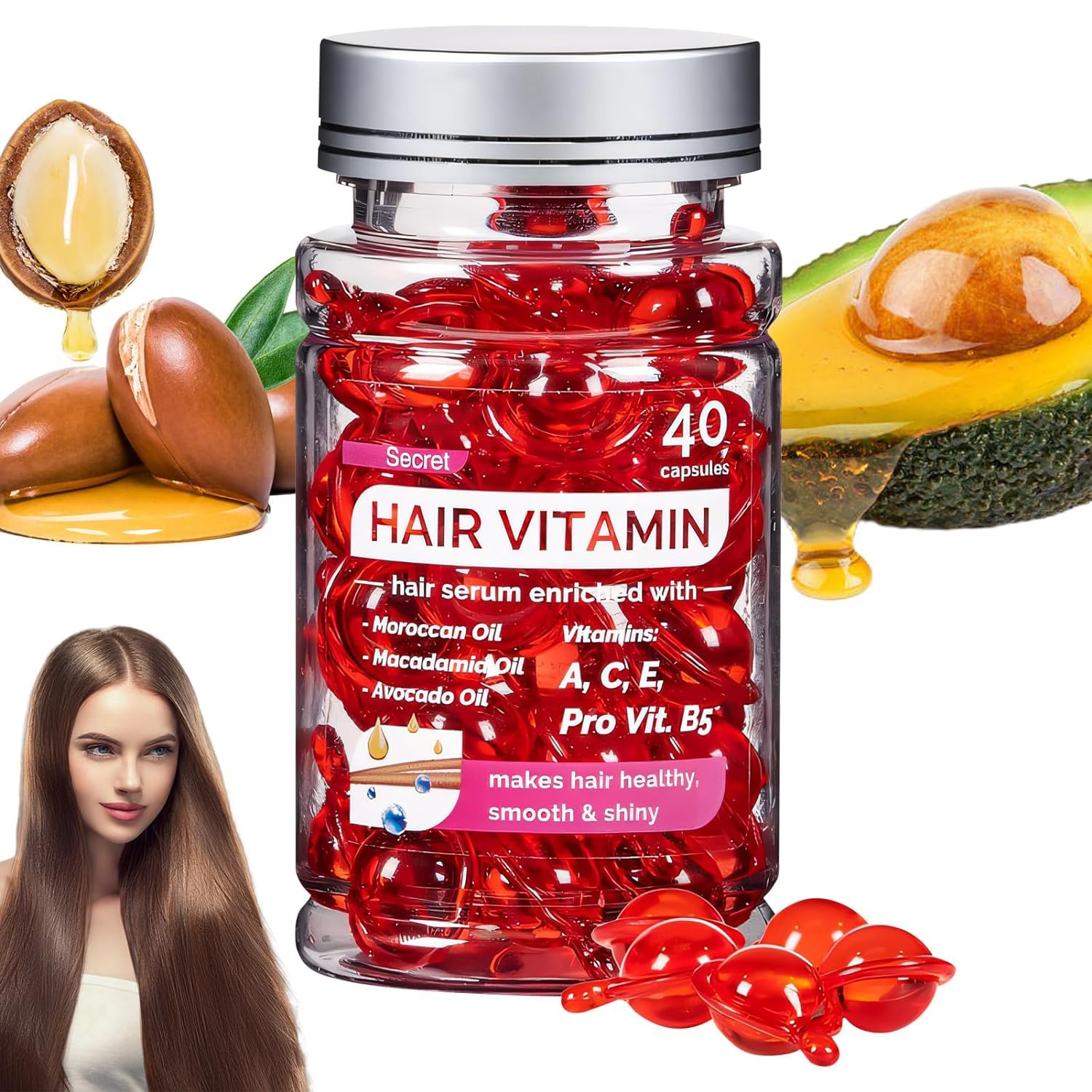How to use: 1. Twist or cut the neck of the capsule with scissors, press the product on the palm and distribute evenly. 2. Apply the oil to clean, damp hair and comb it lightly. 3. Do not rinse. Blow dry your hair and style it as usual. For best results, it is recommended to use the oil regularly. Specification: Product Name: Hair Vitamin Oil Capsules Keywords: hair care Gross weight: 68.4 g. Product Ingredients: Argan Oil, Macadamia Oil, Avocado Oil Product list: 1 bottle x hair vitamin oil capsules (including 40 pieces). Notes: Due to the light and screen setting difference, the item's color may be slightly different from the pictures. Due to the difference in manual measurement, please allow a 1-3 cm difference in size. DIRECTIONS Twist or cut the neck of the capsule with scissors, press the product on the palm and distribute evenly. Apply the oil to clean, damp hair and comb it lightly. Do not rinse. Blow dry your hair and style it as usual. For best results, it is recommended to use the oil regularly. SAFETY WARNING 10 See moreSafe for all hair types: Use the hair treatment essence developed for all hair types - straight hair, wavy hair, curly hair, frizzy hair, dyed hair, etc. Easy to use: no rinsing required. After washing the hair, simply apply the essence and then shape or blow dry the hair as desired. Effortless suppleness: With our special formula, you can enjoy the charm of smooth, tangle-free hair, prevent tangles and tangles and protect your hair all day long. Nourishes your hair: Our essential hair care oil can penetrate deep into the hair, repair it immediately, improve the elasticity of the hair and give it a luxurious, silky texture. Hair vitamin oil: the unique blend of fatty acids, antioxidants and vitamins of the hair treatment serum, including Moroccan oil, macadamia oil and avocado oil as well as vitamins A, B5, C and E, work together to promote healthy and vibrant hair.